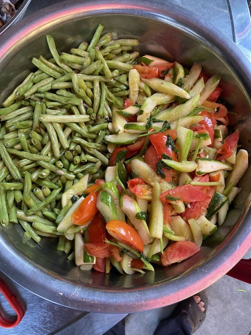 17/8, bếp nhà sonnynhan nấu 60 phần cơm chiều : cá nục chiên giòn, trứng opla, canh bắp cải thịt bằm, đồ xào đủ thứ, sữa Fami, sữa chua vinamilk, chuối.