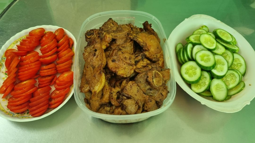 Bếp nhà yêu thương Lathuvang hôm nay: 33 suất với Cốt lết ram mặn. Cà chua dưa leo cắt lát. 1 hộp sữa đậu nành Fami.