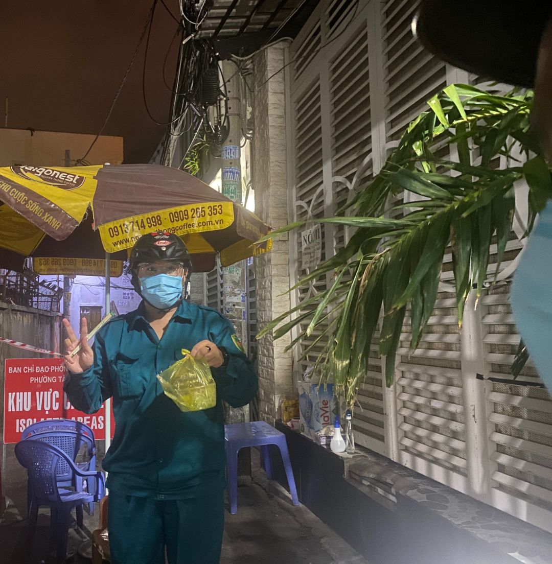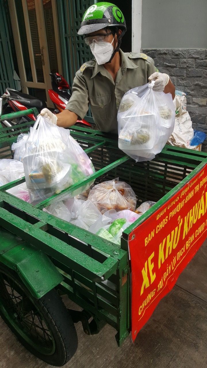 Vẫn như vậy, chị Chữ Thập Đỏ nhận mang về Tram Y Tế Phường 15 để cùng đi phân phối lực lượng tuyến đầu chống dịch , bà con các  khu phố các ly phong tỏa của Phường.