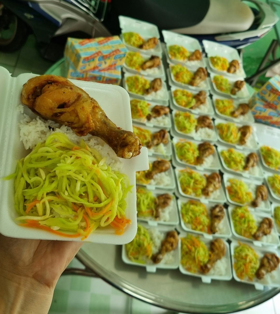 Bếp Nhà Yêu Thương của Lathuvang P15-Q10: 30 suất với Đùi gà xối mỡ, susu, cà rốt xào tỏi, 1 hộp sữa đậu nành Fami.