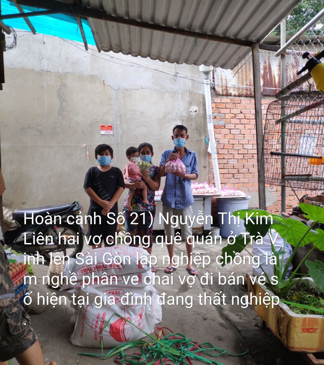 may mắn trước một ngày bà con xóm trọ Mai Trâm được Nhóm Wind Bạn Opla hỗ trợ 38 hộ gia đình có hoàn cảnh khó khăn như sau 20 kg gạo. 30 chục hột vịt.và tiền mặt 300k.cộng thêm hôm nay bên quán cơm SG cũng hỗ trợ cho mỗi gia đình 1 bịch cá khô của anh em Quảng Trị gửi và 5 trái chanh nên tình hình xóm trọ Mai Trâm cũng tạm ổn về thức ăn .