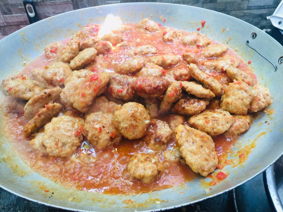 Gà viên rau củ sốt cà