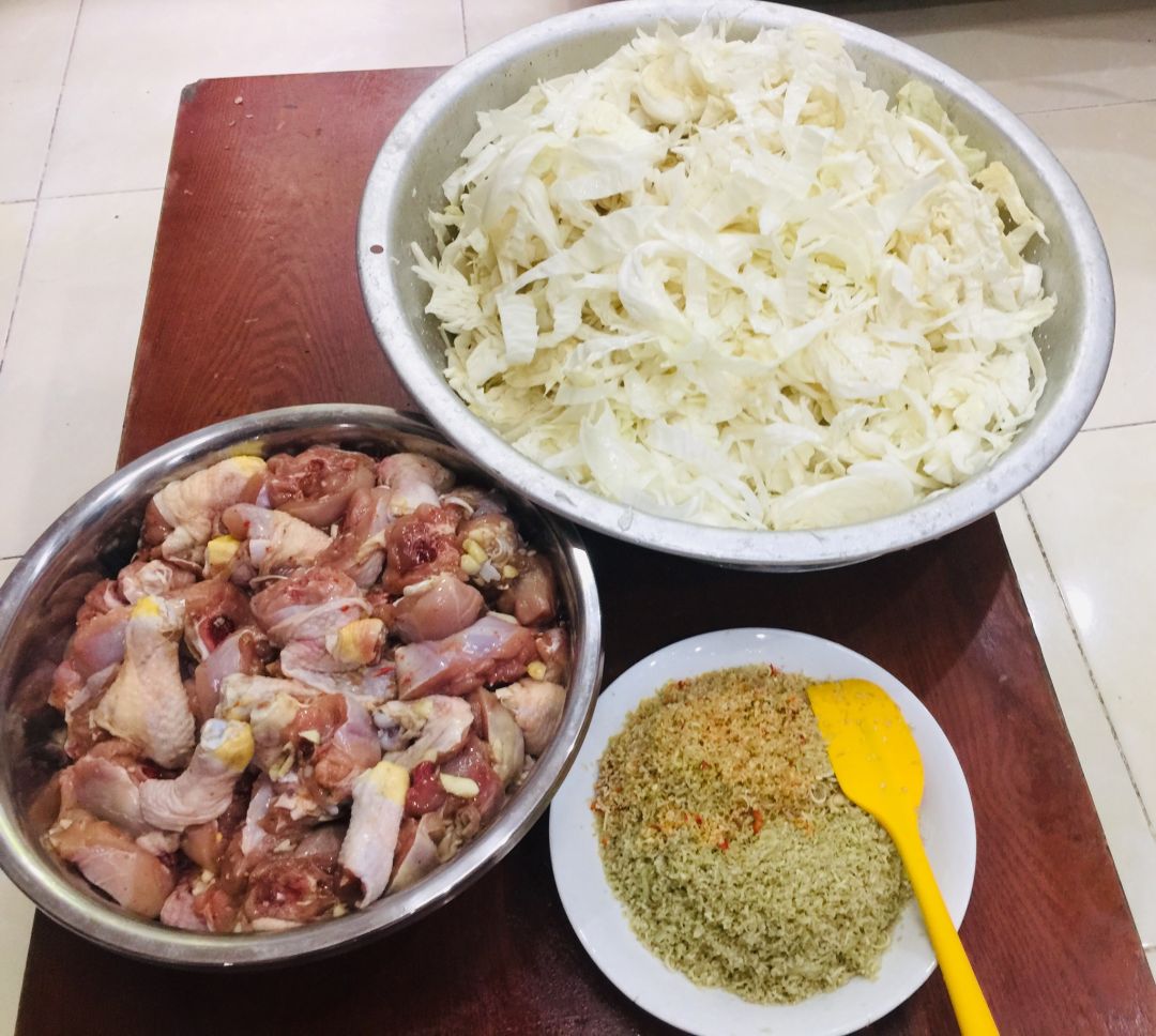 Hôm nay bếp nấu món gà kho rất ngon cho Bệnh viện dã chiến số 8.