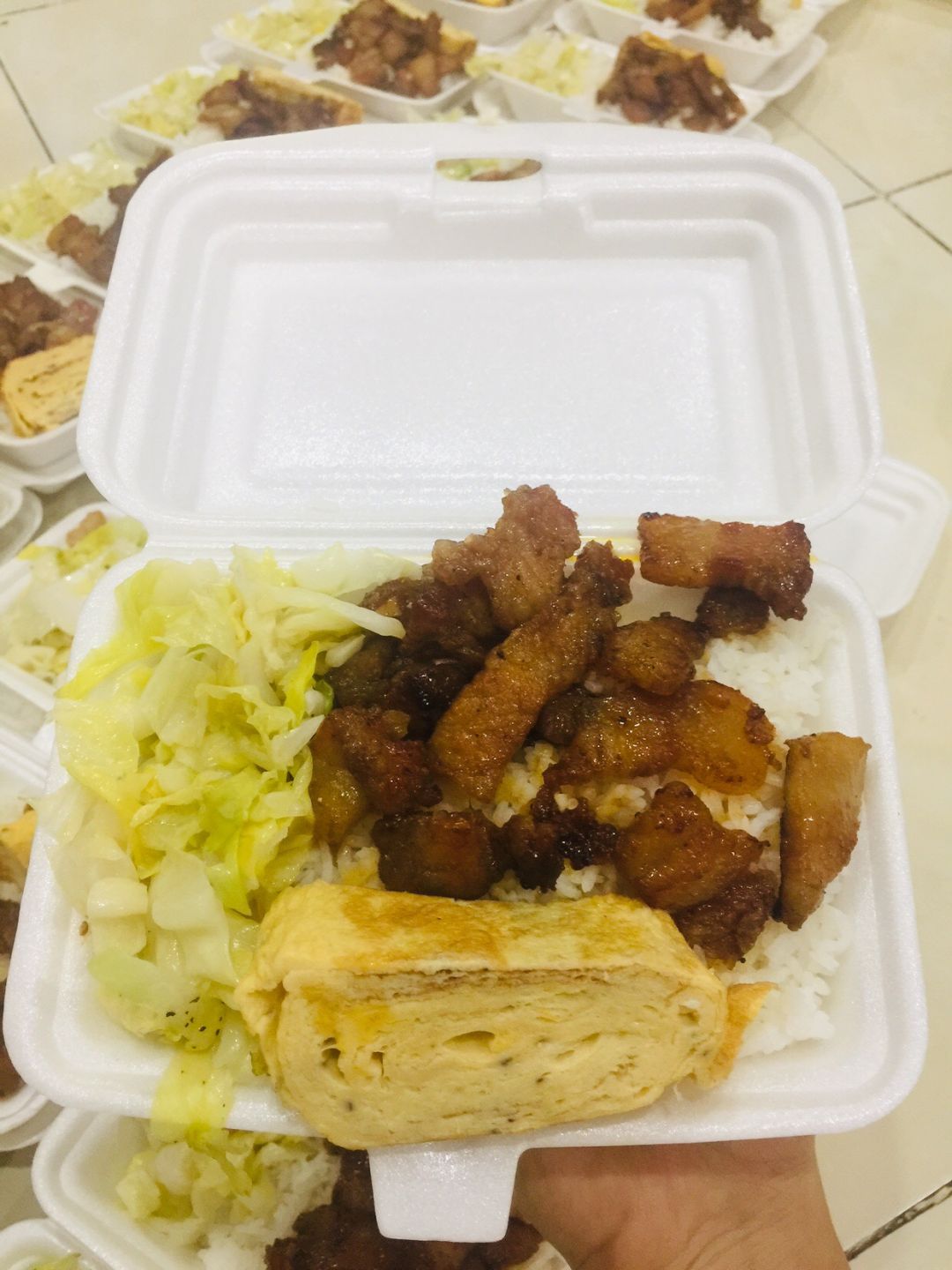 Mỗi phần cho 1 hộ gồm 2 suất cơm đầy đủ, 1 cơm thêm và 2 hộp sữa.
