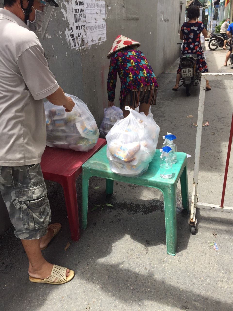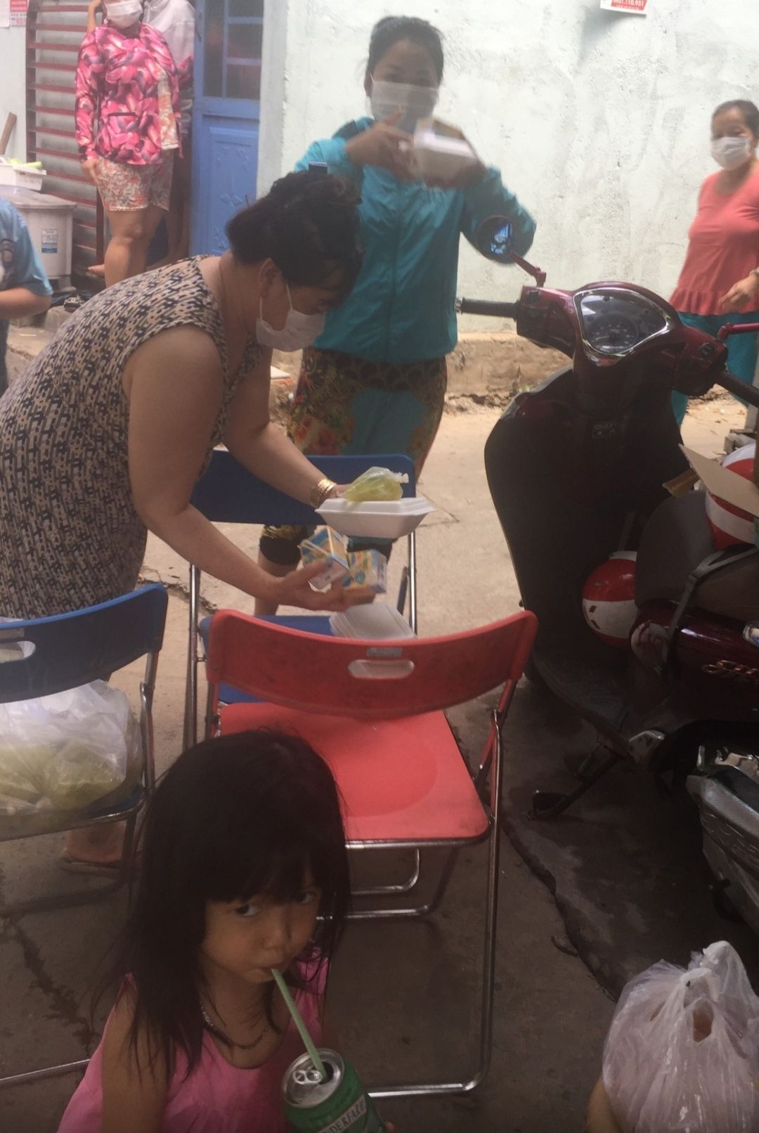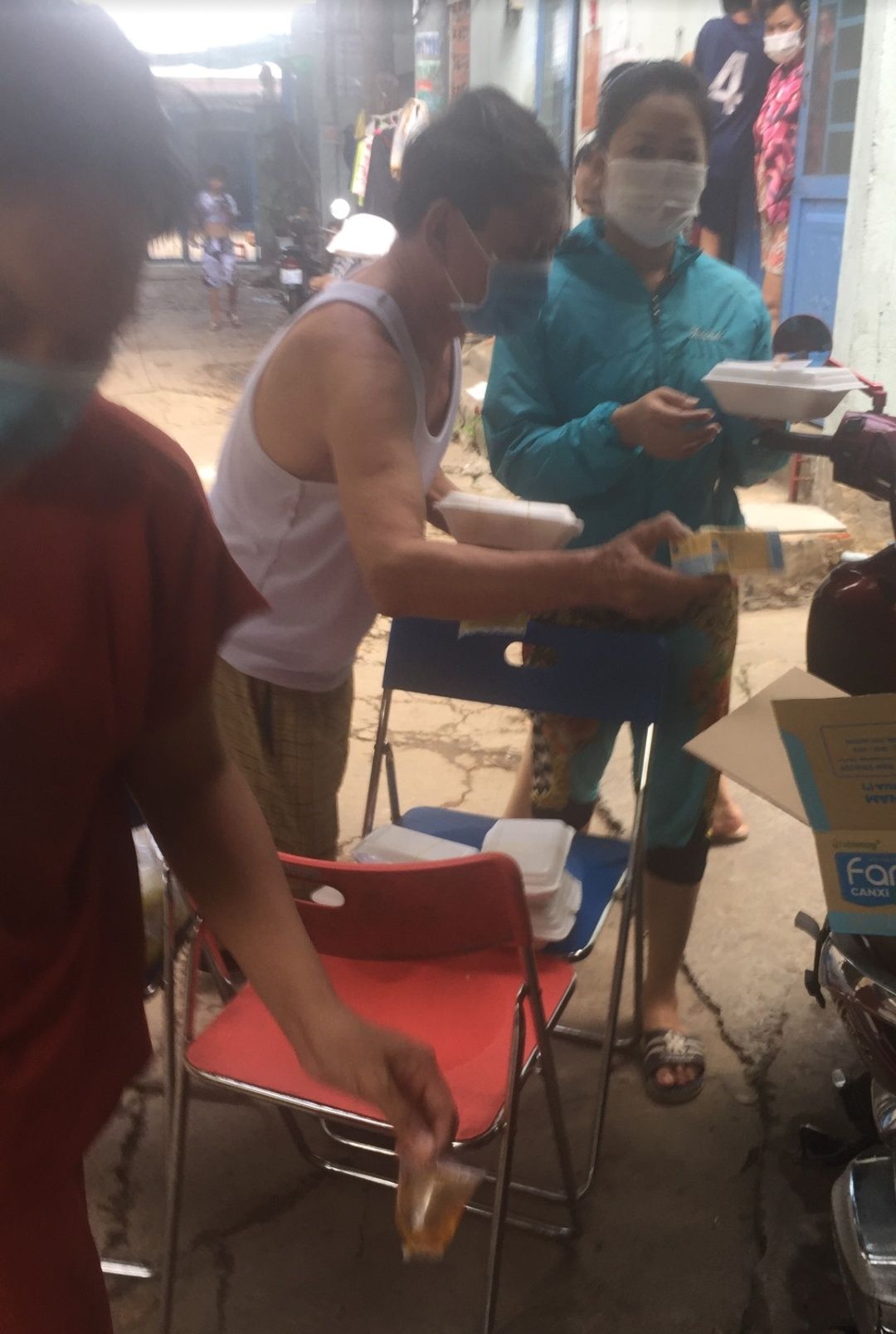 Tình hình là sau buổi phát cơm đầu tiên ngày 16/7 tại khu vực đang bị cách ly thì chú Tâm - tổ trưởng khu phố đã chủ động liên hệ với cô Ngọc để xin thêm về thời gian phát cơm cũng như số lượng phần cơm cho bà con nghèo và một vài anh em dân quân; cán bộ y tế đang thực hiện nhiệm vụ hỗ trợ tại khu vực này.