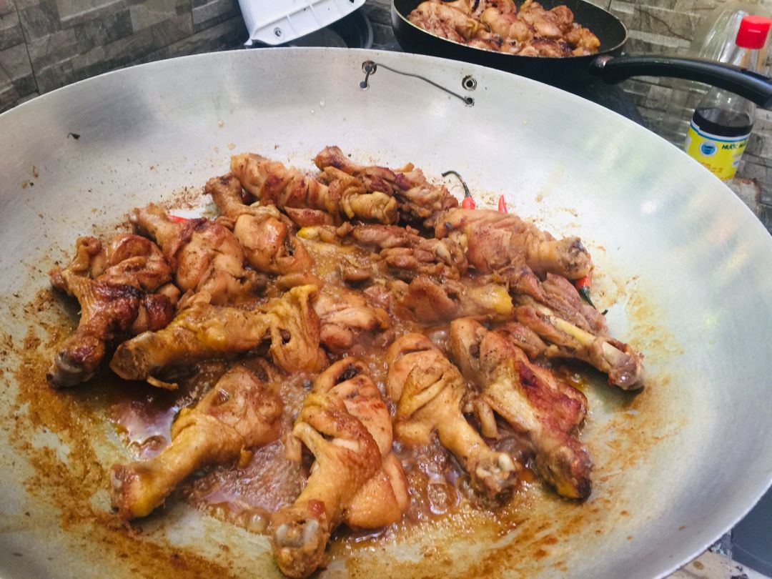 nên số lượng đùi gà không đủ.Mai Trâm đã dùng trứng gà chiên và canh để phục vụ bà con. ngày mai.Mai Trâm xin đăng ký nấu 60 phần cơm tại bếp nhà chỗ Mai Trâm nghe cả nhà.