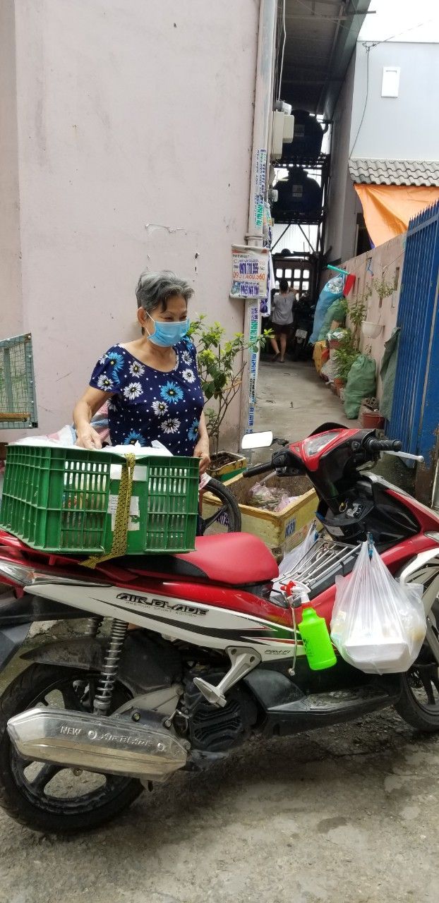 Cán bộ nhận Cơm: chị Thảo- Cán bộ trung tâm xét nghiệm bệnh tật thành phố Hồ Chí Minh