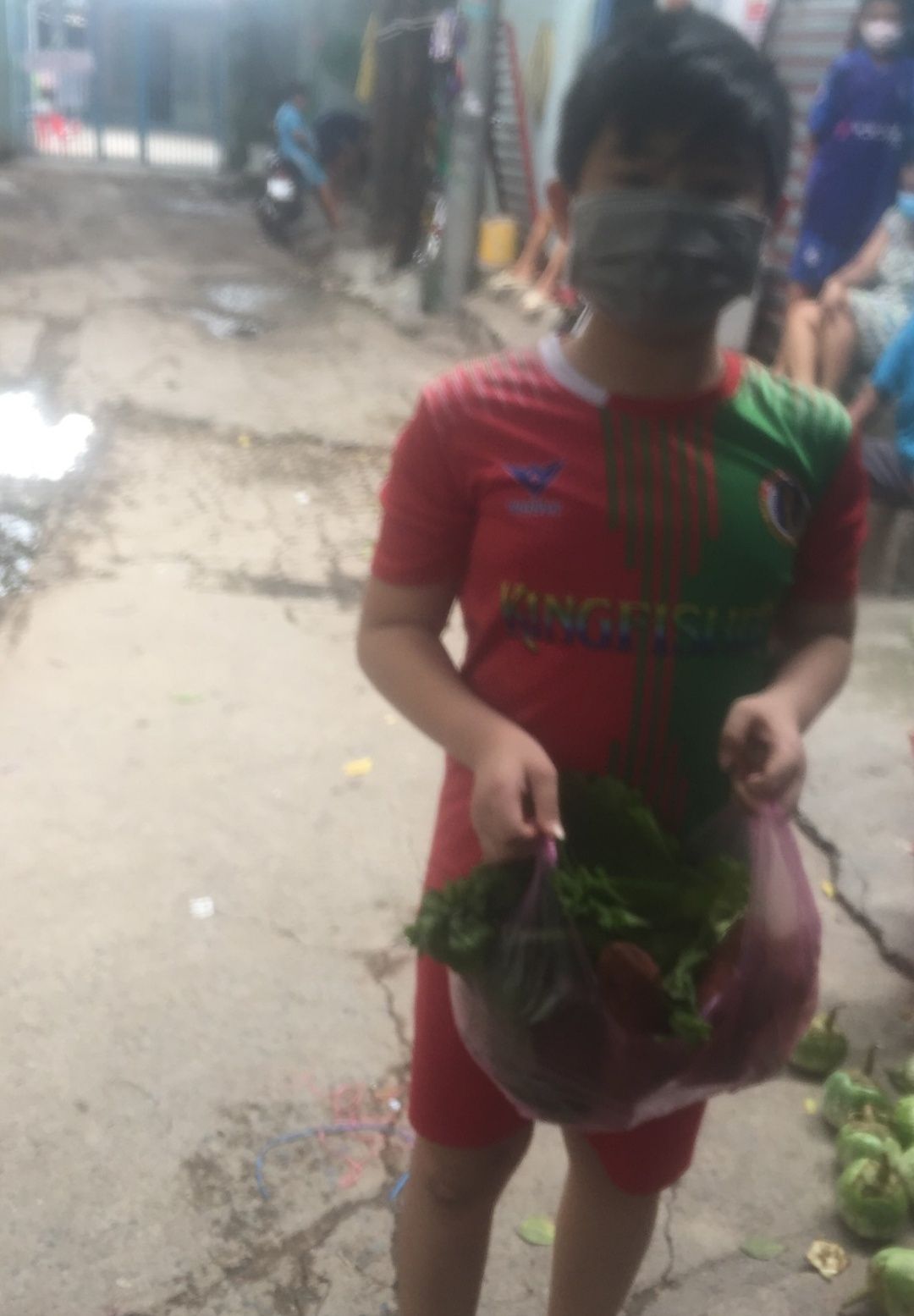 gửi cả nhà một số hình ảnh hôm nay Mai Trâm có nhận 600 kg rau củ quả từ Quán Cơm SG của Anh Tuấn và Anh Châu gửi ủng hộ bếp nhà nên Mai Trâm đã lấy hỗ trợ bà con xóm trọ Mai Trâm mọi hộ một phần ăn buổi chiều.