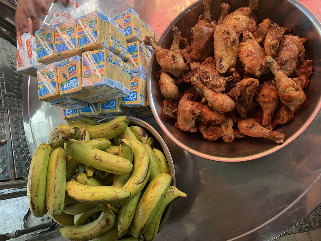 Thực đơn : đùi gà chiên, dưa leo xào, canh bí đỏ, sữa fami, tráng miệng chuối. Mấy bửa nay nhiều việc nên nhờ phường cho xe xuống nhận và đem qua khu cách ly.