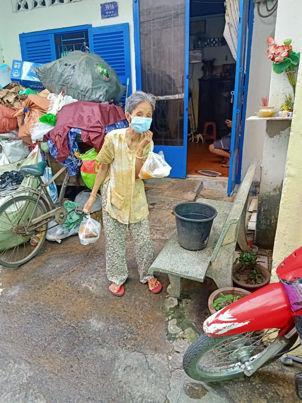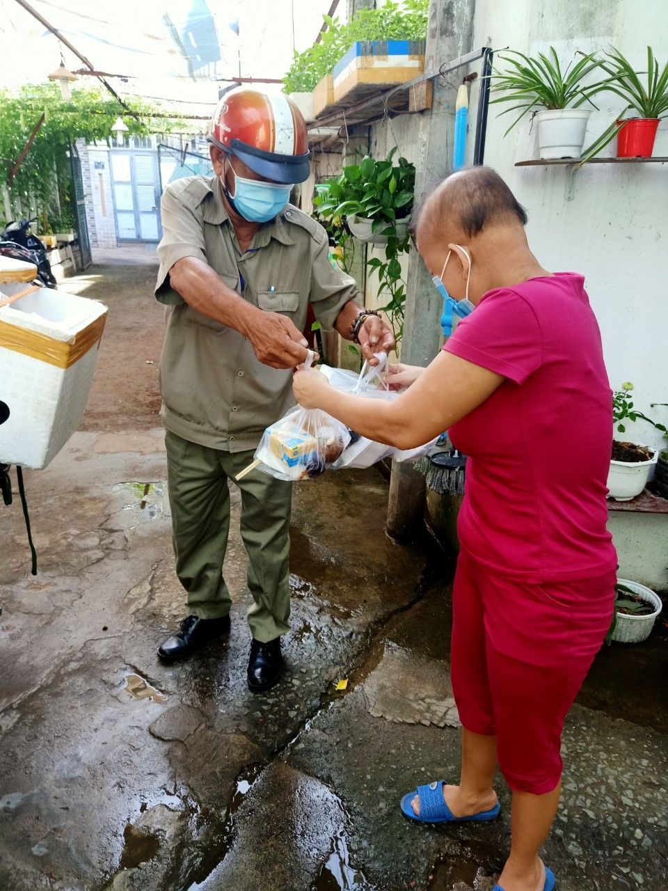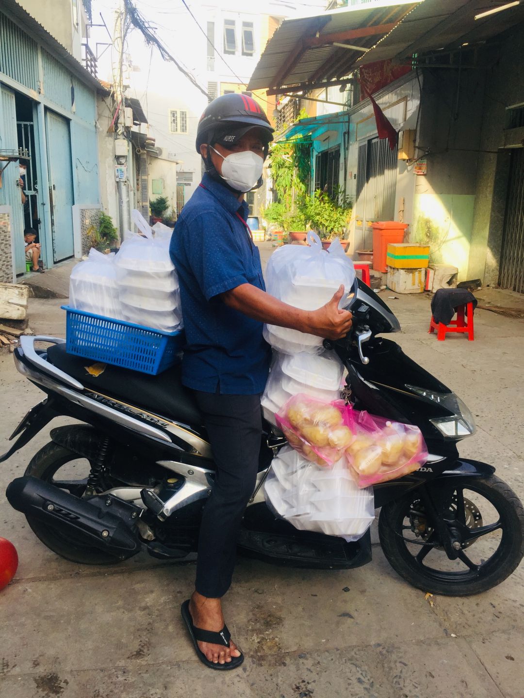 Hôm nay bếp có dư 6 phần thịt kho nên vào bịch phát thêm cho những hộ khó khăn nhất.