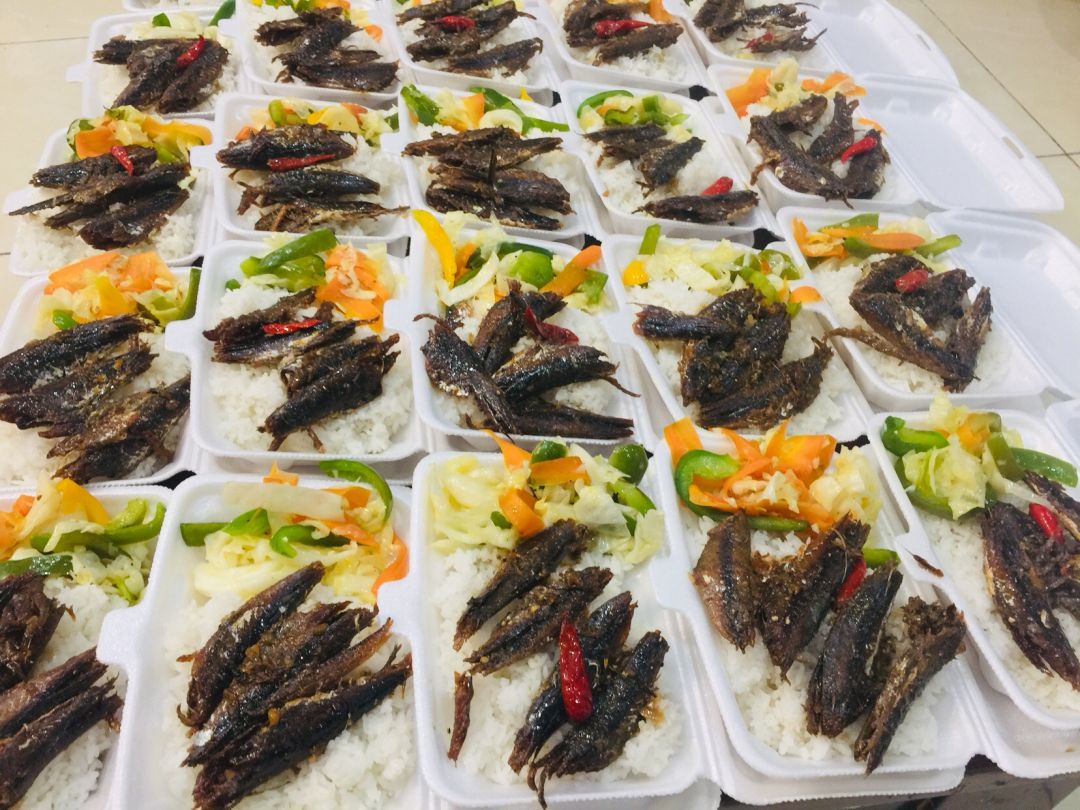 Chiều nấu 160 phần cơm cá chiên sốt cà+ dưa leo, canh bí đỏ+ sườn que.