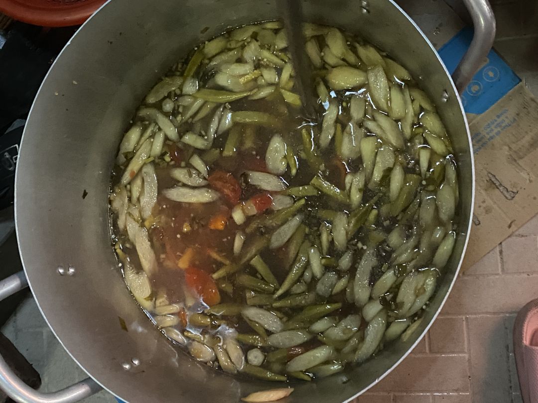 17/8, bếp nhà sonnynhan nấu 60 phần cơm chiều : cá nục chiên giòn, trứng opla, canh bắp cải thịt bằm, đồ xào đủ thứ, sữa Fami, sữa chua vinamilk, chuối.
