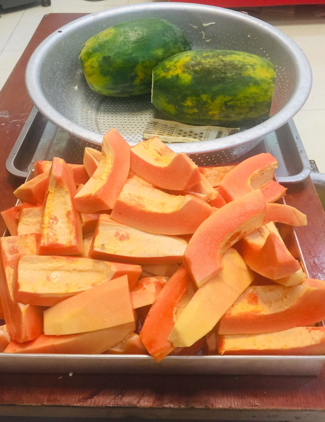 Hôm qua Bếp có nhận thơm và đu đủ. Bếp đã gửi CTĐ đi trao cho bà con khu cách ly.