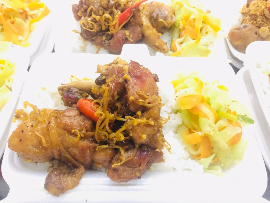 Cách thức chuyển cơm đến cho mọi người đi bộ (vì khu trọ cùng hẻm)