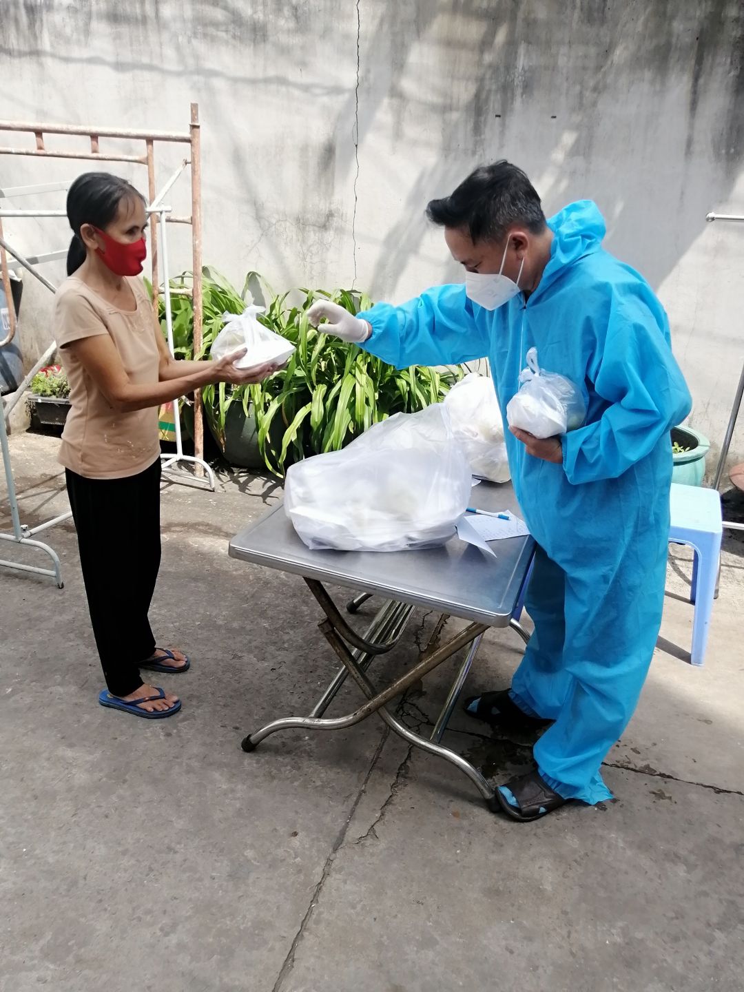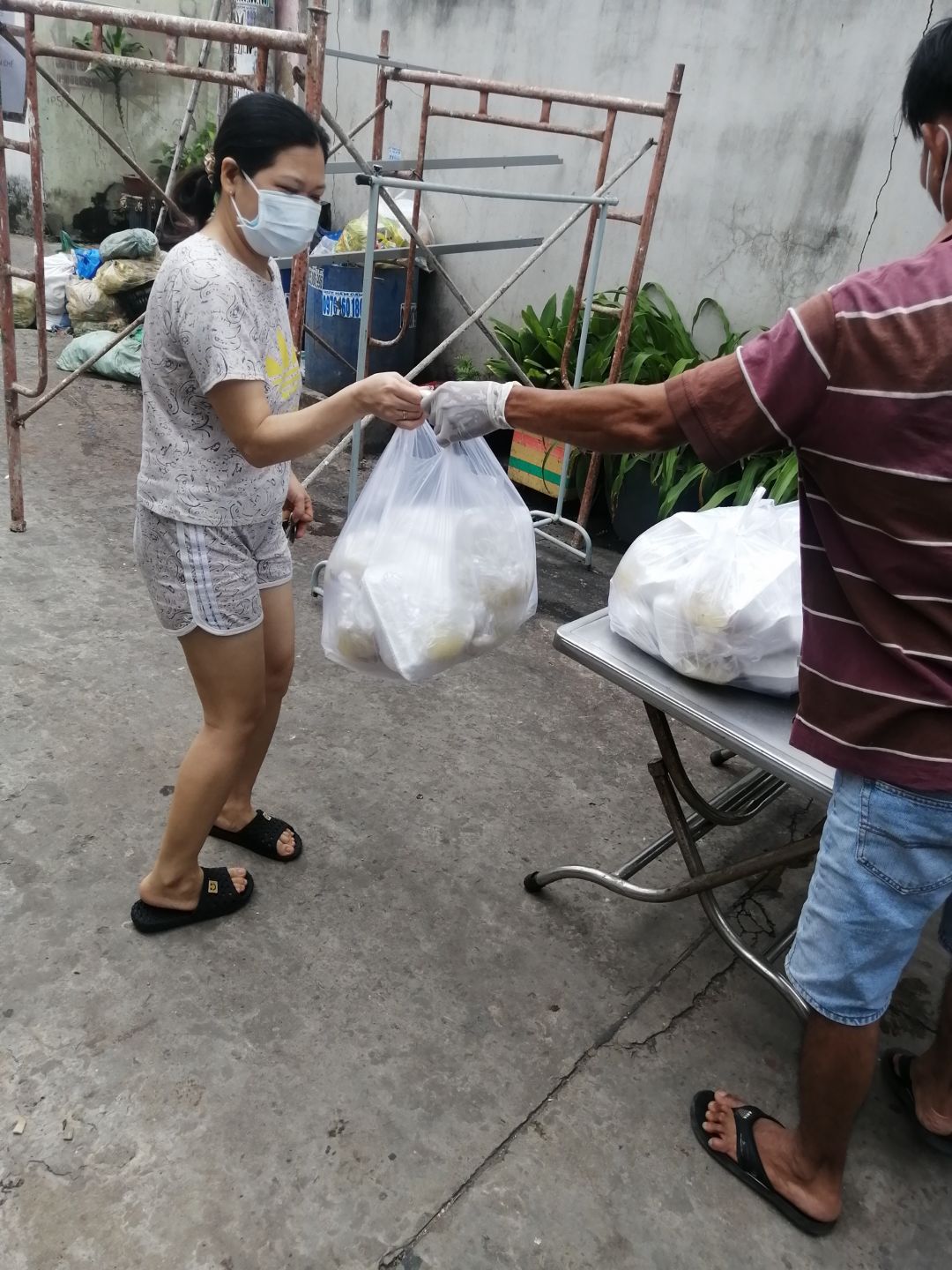 - Chiều : 63 phần bánh mì cà ri gà. Tặng 60kg bơ cho các y bác sĩ và các anh em chốt trực, 10kg tặng chia cho các anh chị trong bếp nấu.