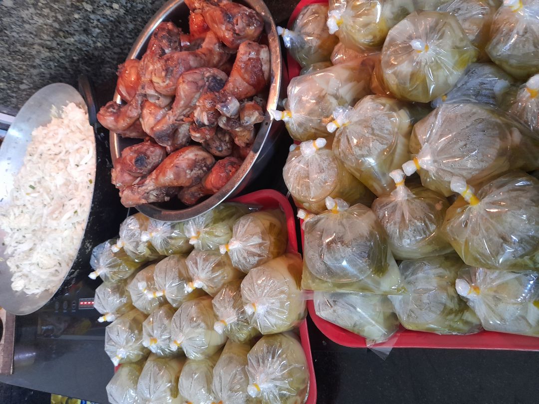 Bếp nhà yêu thương Lathuvang: 37 suất với Đùi gà rô ti. Bắp cải cà rốt xào tỏi. 1 hộp sữa đậu nành Fami.