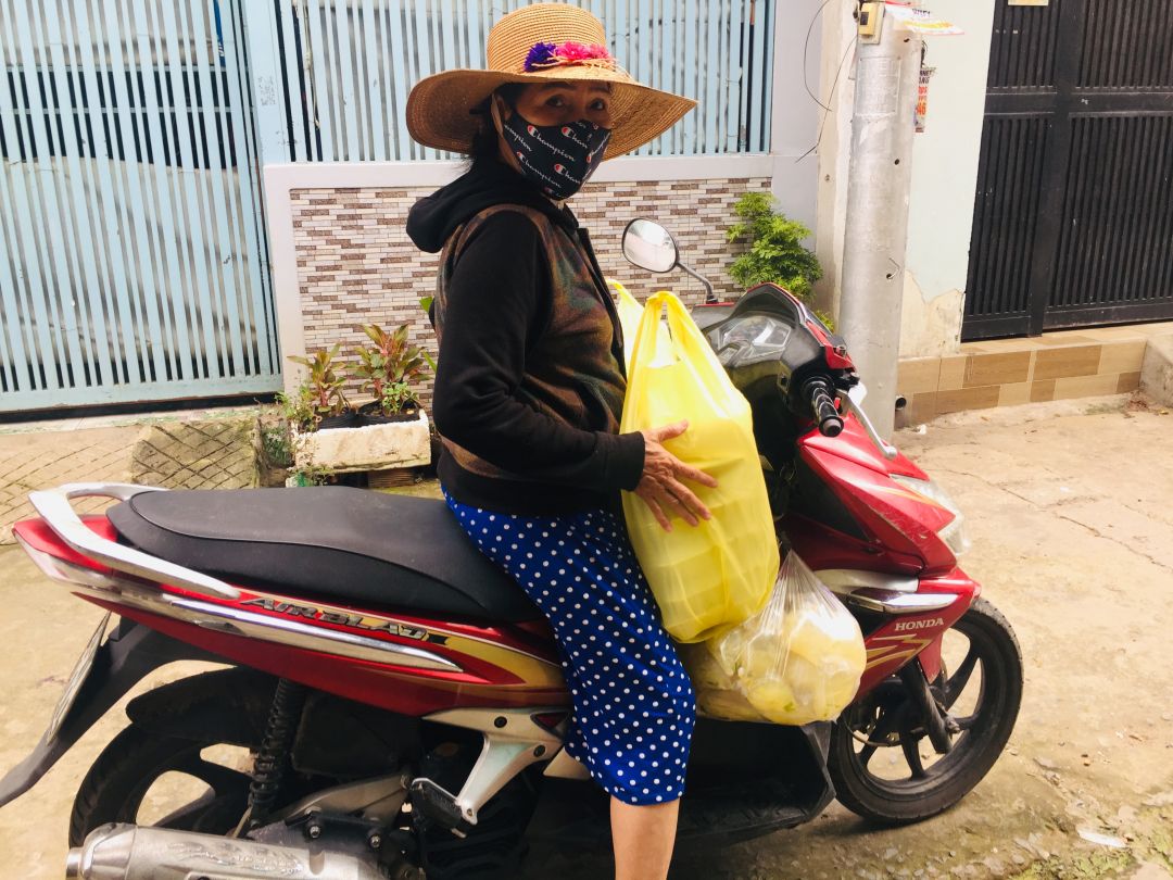 - Đu đủ giao chị Hội chữ thập đỏ đi phát cho bà con.