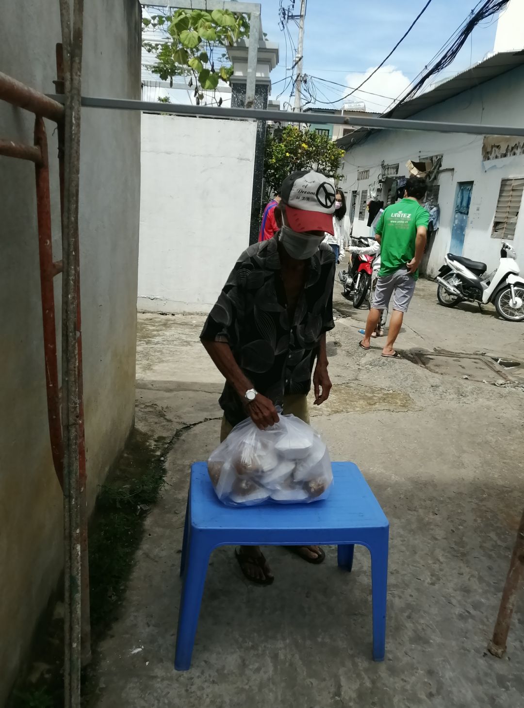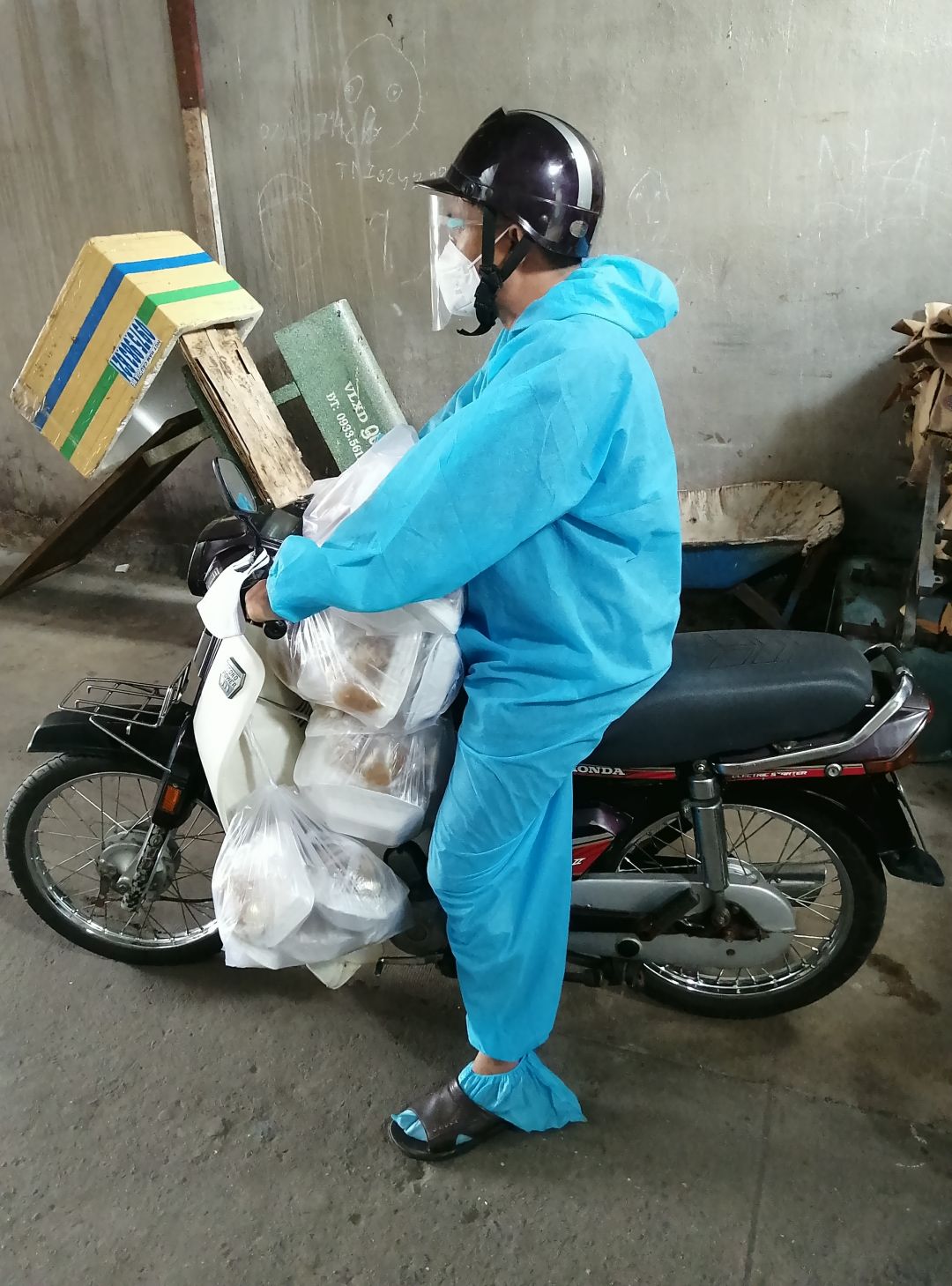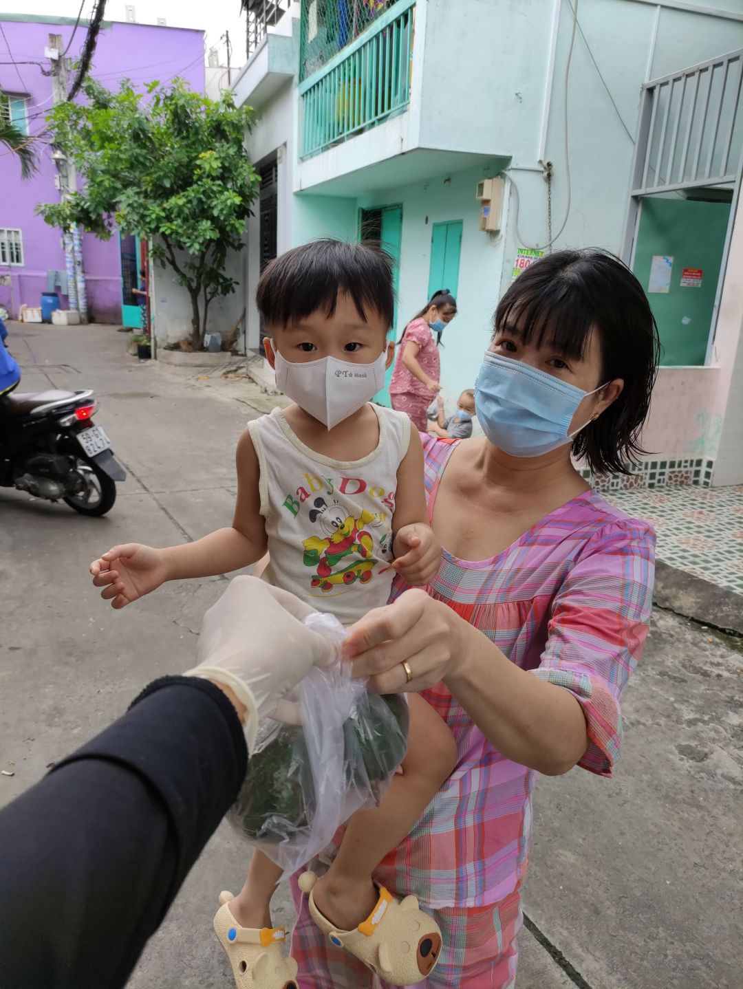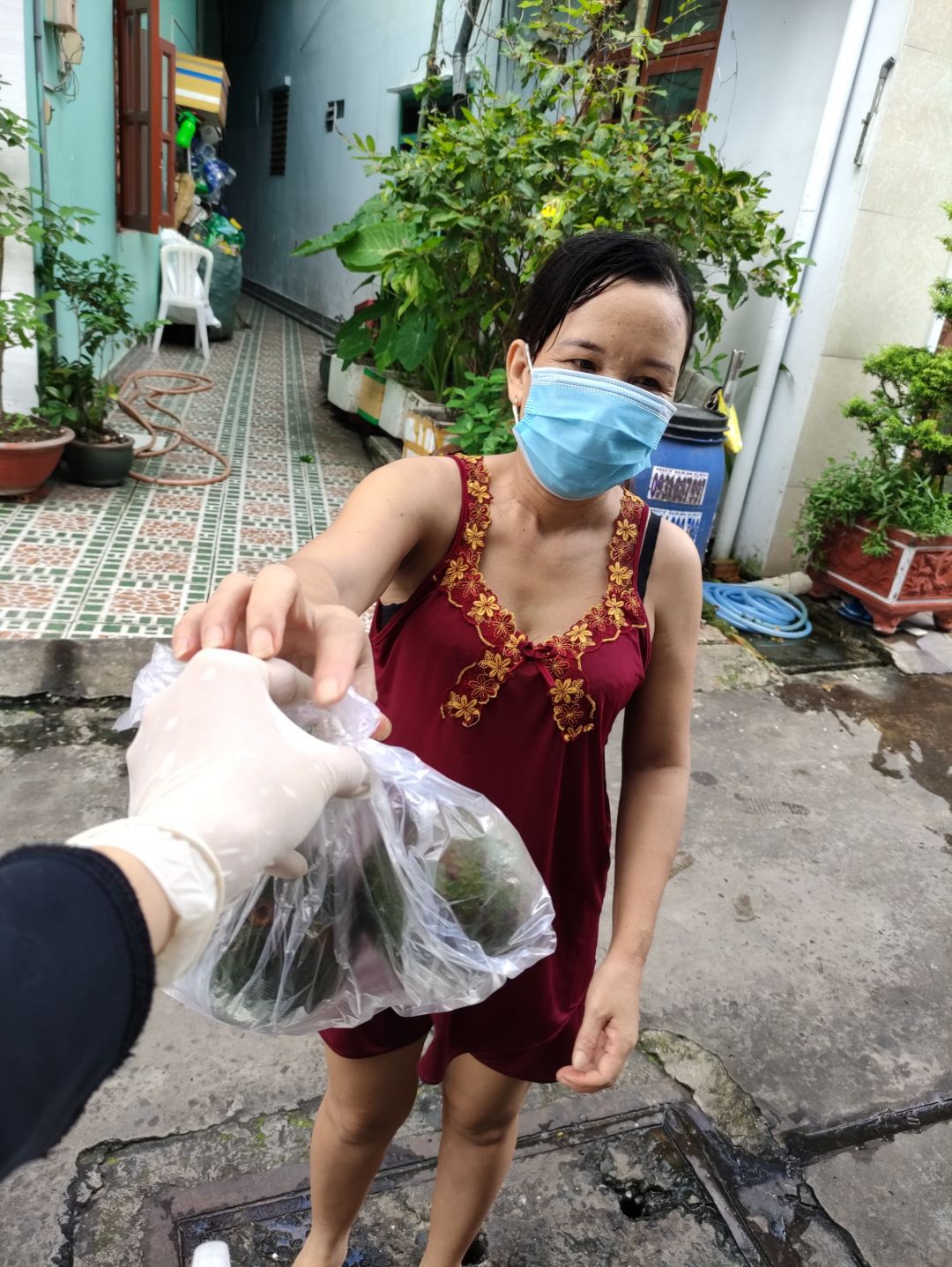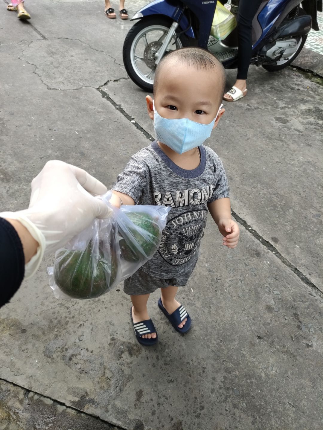 Hôm qua (2/09/2021), bếp nhà An có nhận 300kg bơ+ 200kg khoai lang từ anh Tú( Bếp nhà yêu thương) và hơn 200kg rau tươi từ 1 mạnh thường quân giấu tên. Ngày hôm nay đã cùng công an khu vực đem phân phát rau củ quả cho 439 hộ khu cách ly và f0 trong khu phố cho dù trời tối mưa tầm tã.