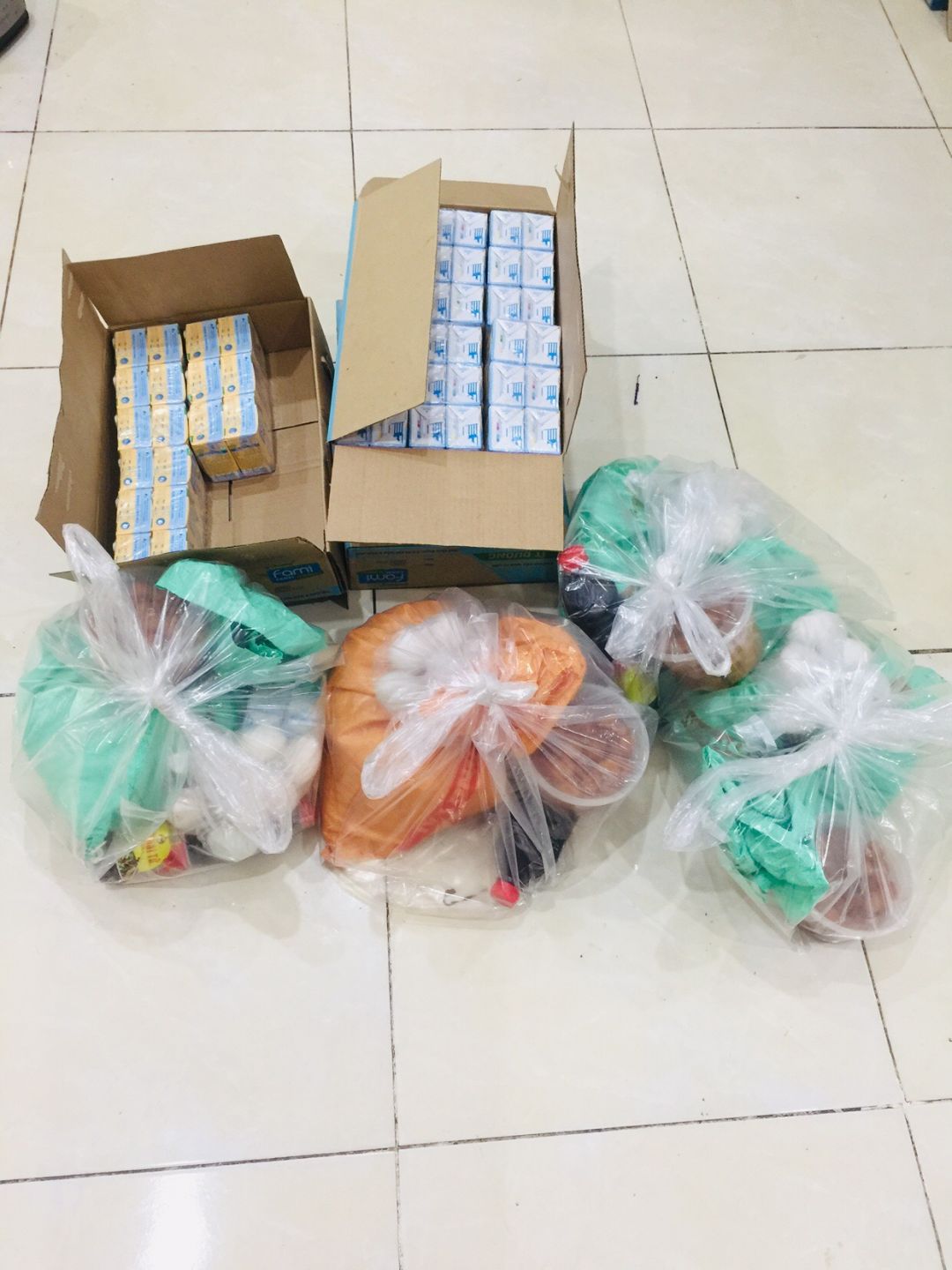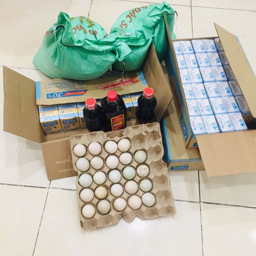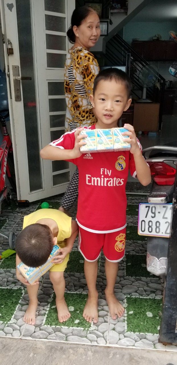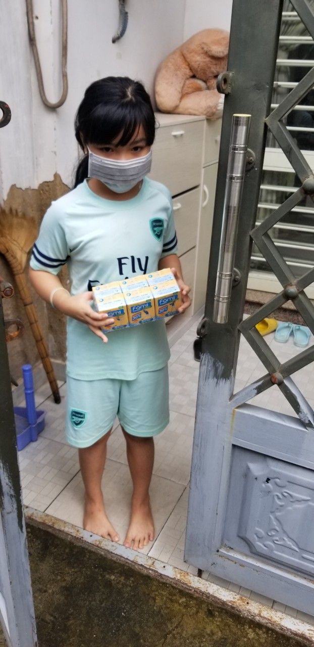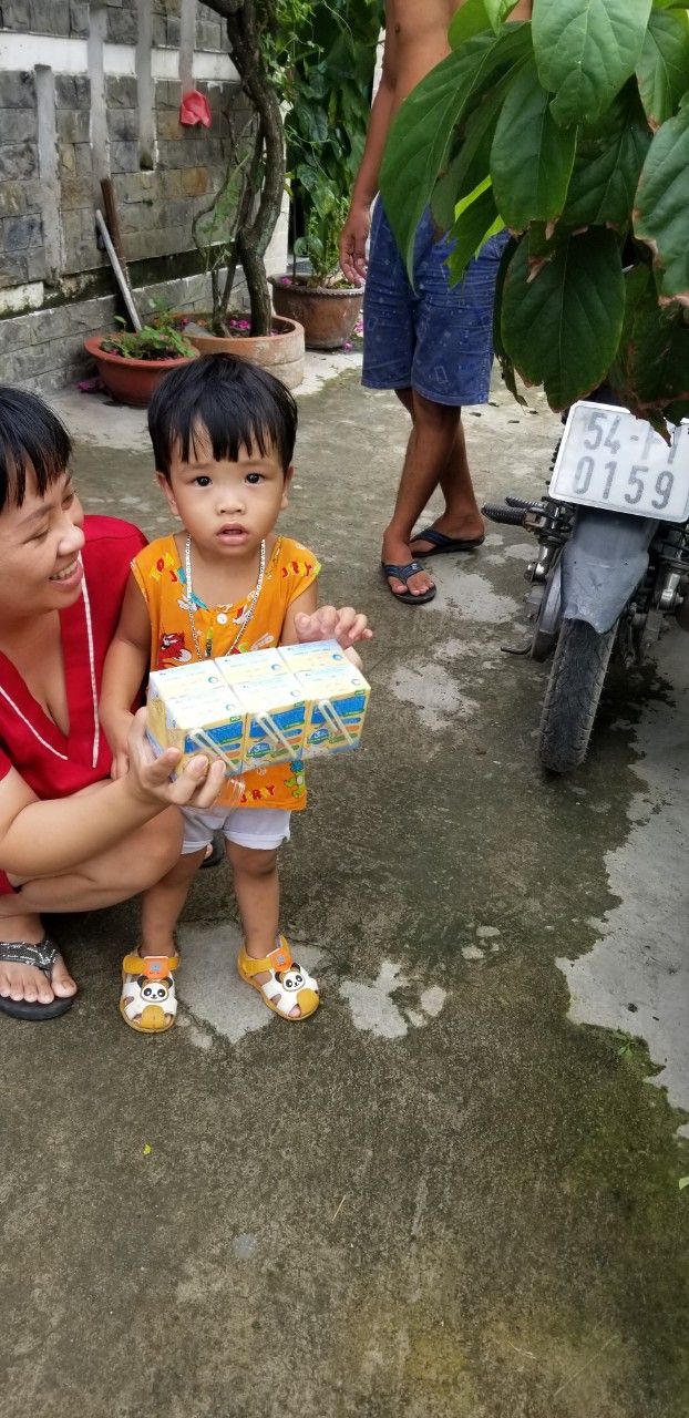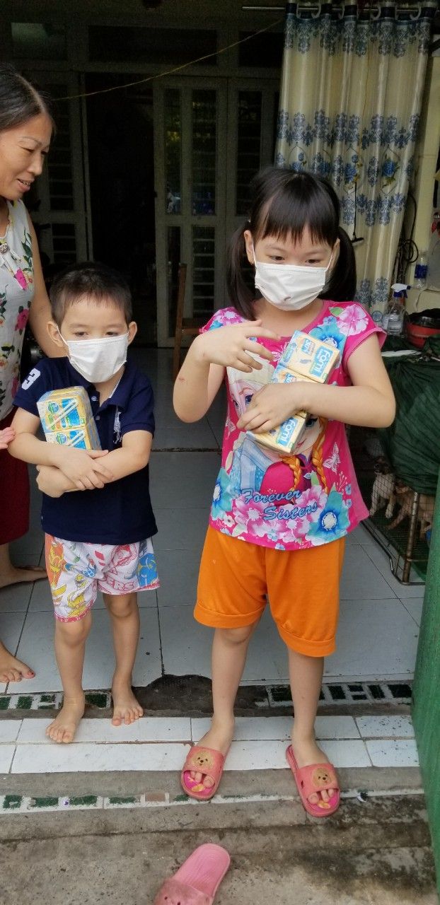 Phần sữa: 15 lốc chia cho các trẻ em trong kp mỗi em 1 lốc