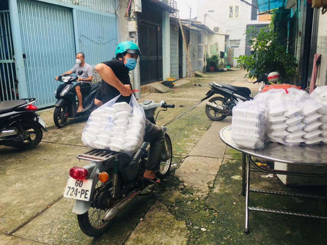 15/9, bếp nhà Sonnynhan nấu các phần cơm cho y bác sĩ trạm y tế phườnh An Lạc và Bình Trị Đông B, quận Bình Tân