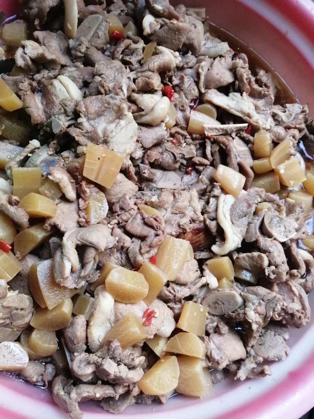 Sáng nấu 245 phần cơm thịt gà chiên mắm tỏi ớt; bắp cải xào; canh bí đao+ su su+ sườn que