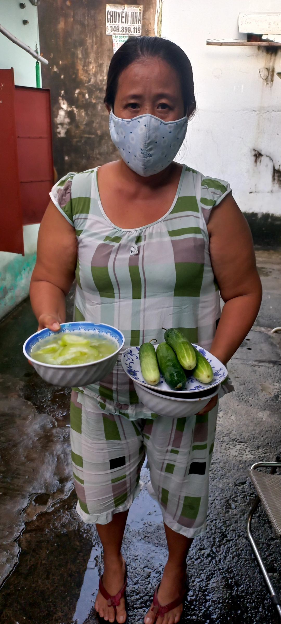 Bếp nhà An cảm ơn bếp nhà chị Dạ Hương đã gửi tặng 120kg dưa leo; 60kg cải thảo và 40kg cà tím. Các anh công an khu vực đã đem tặng cho các hộ gia đình cùng số thuốc men. Bà con gửi lời cảm ơn rất nhiều ạ!!!