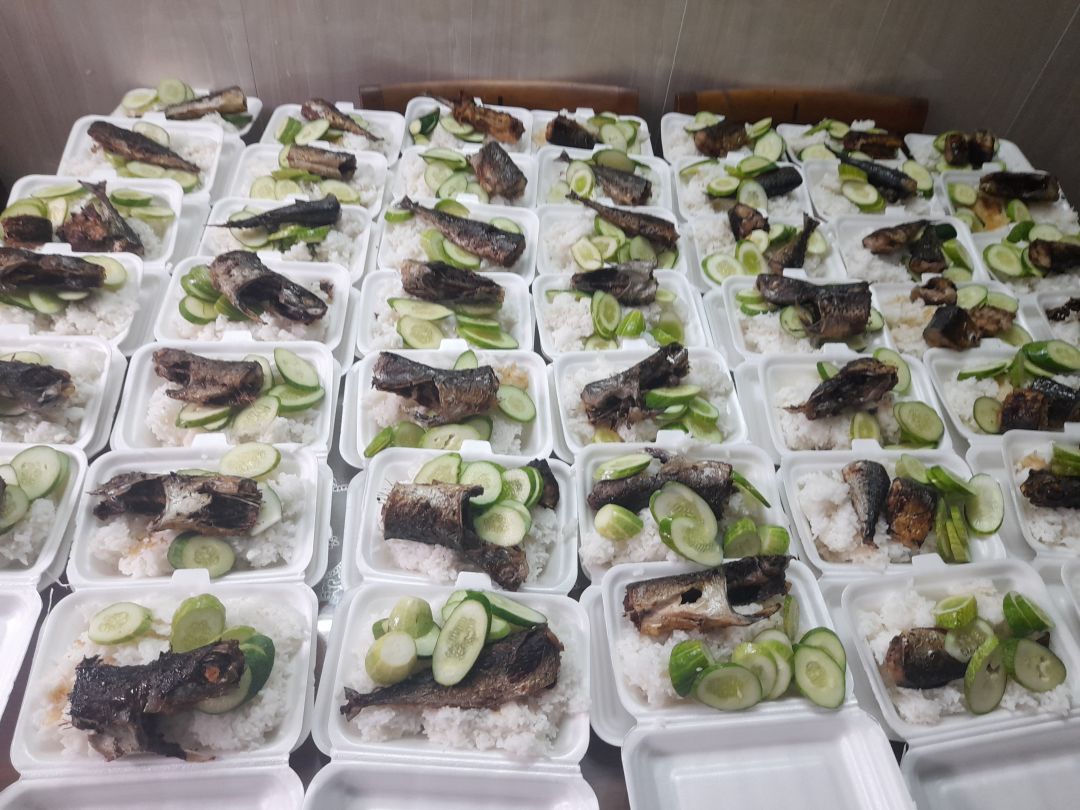 - Trưa : 64 phần cơm cá chiên và opla, bầu xào, canh bí xanh nấu xương.