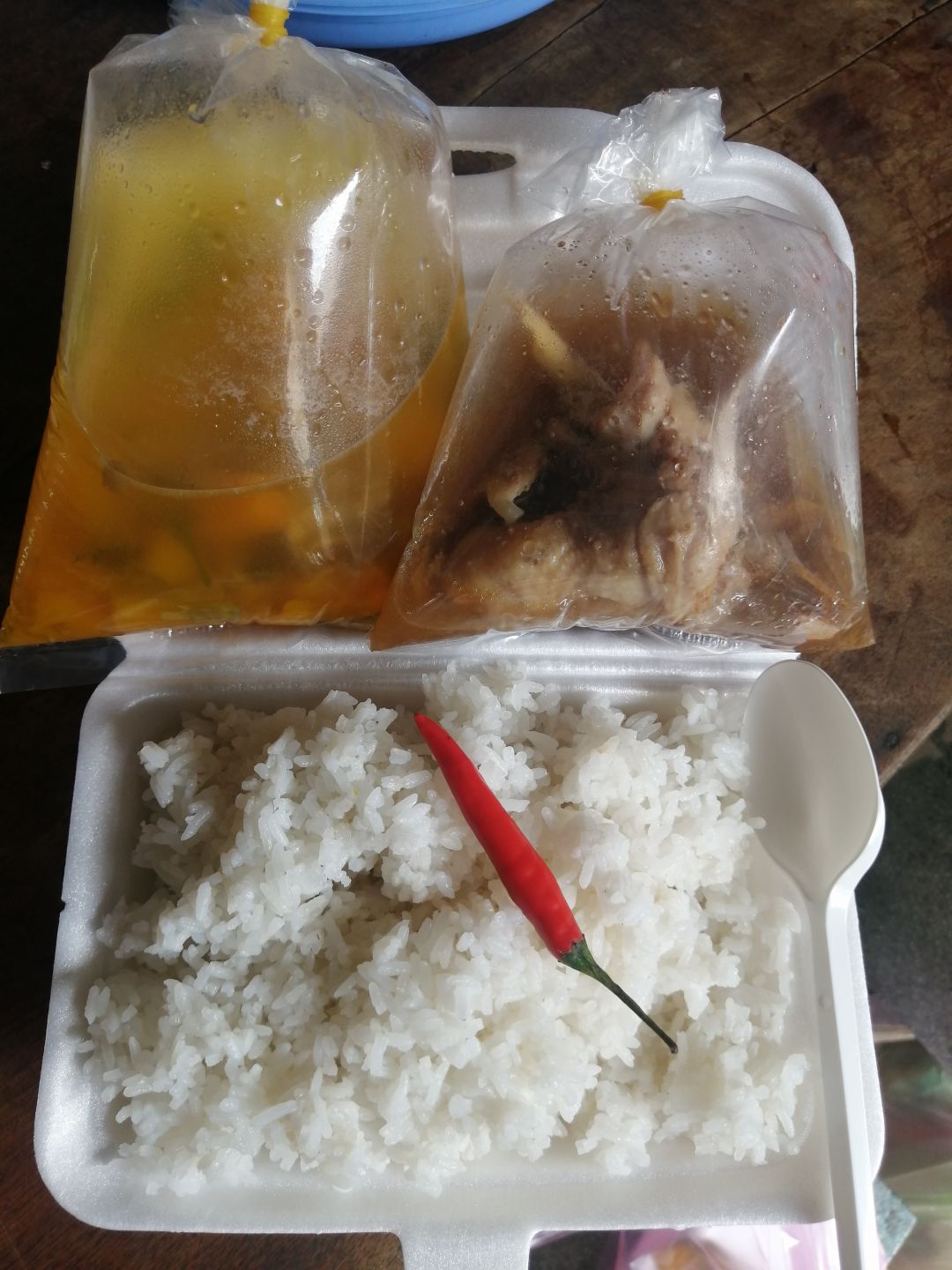 Sáng nấu 265 phần cơm thịt heo kho trứng; su su xào; canh bí đỏ+ sườn que.