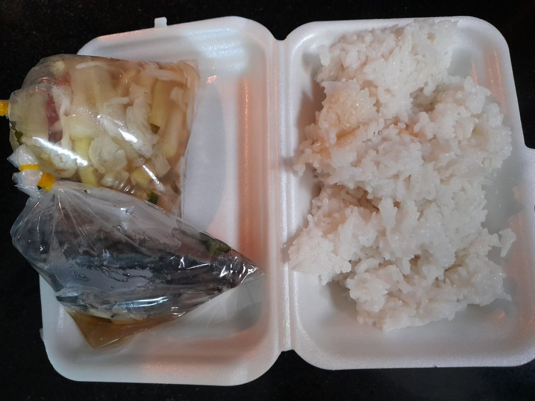 Sáng nấu 245 phần cơm cá saba chiên; rau muống xào tỏi; canh cải ngọt+ sườn que.