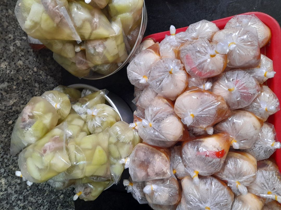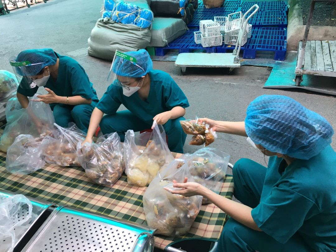 Bếp Thảo gửi đến Bệnh viện Dã chiến số 8 250 phần ăn với món chính là thịt kho củ cải và thịt gà xào dưa leo.