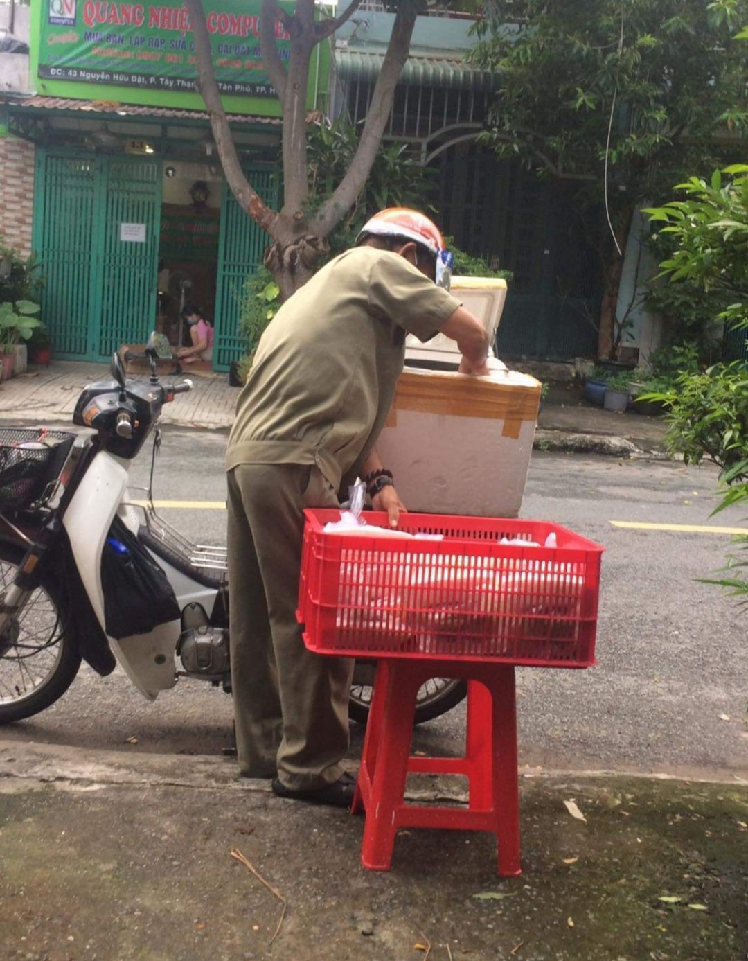 Bếp nhận thùng cam của bếp nhà yêu thương gởi phát thêm cam cho những người già... Với mong muốn bà con giữ gìn sức khỏe