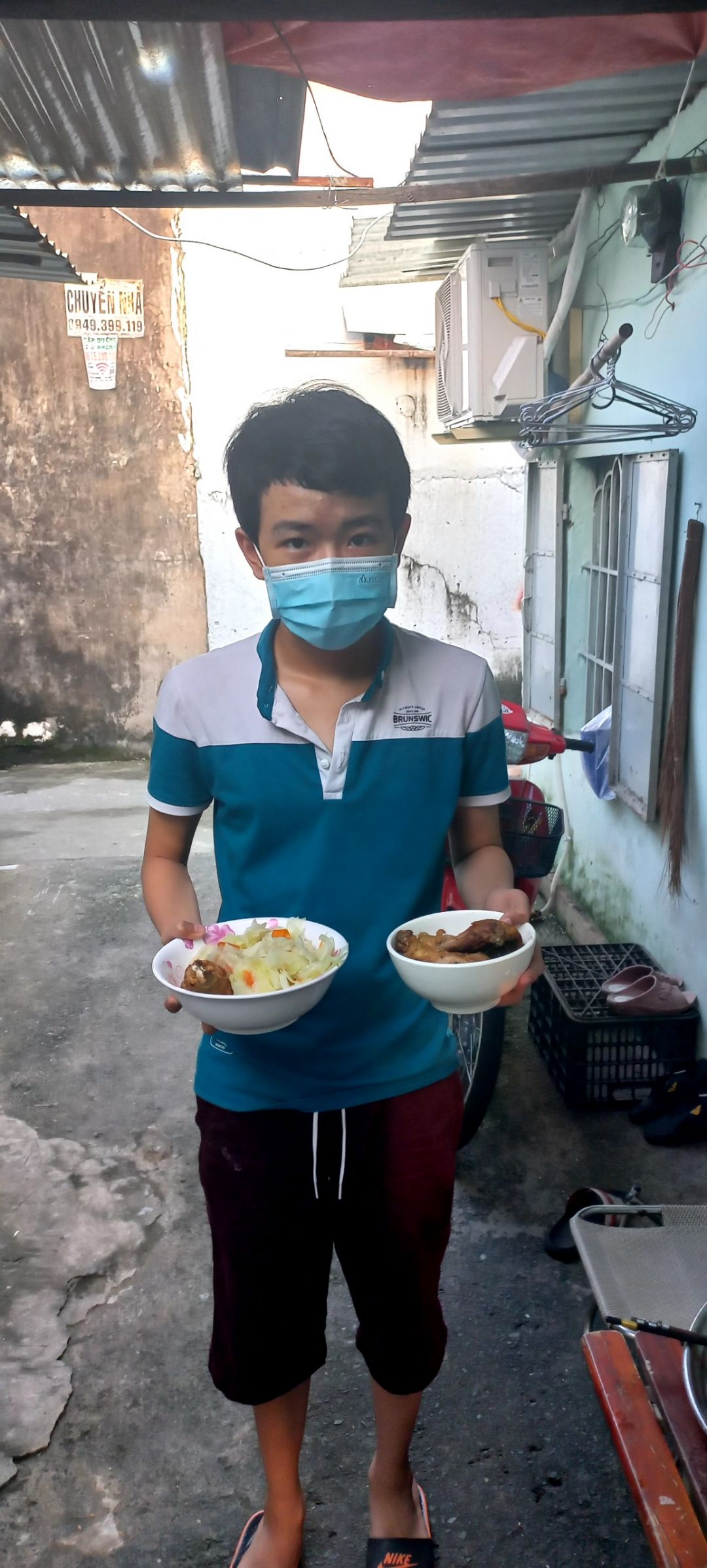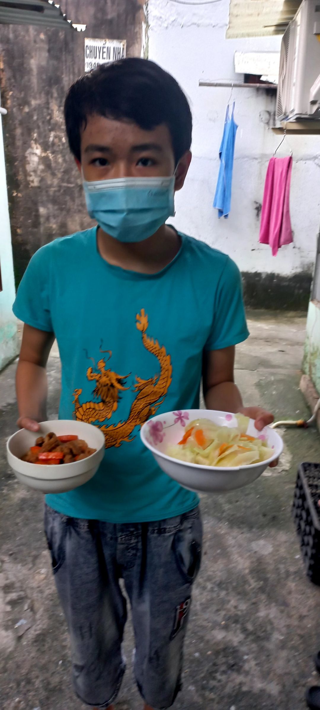 Bếp nhà An cũng đã đi phát cam cho bà con ăn có vitamin, ngăn ngừa covid.