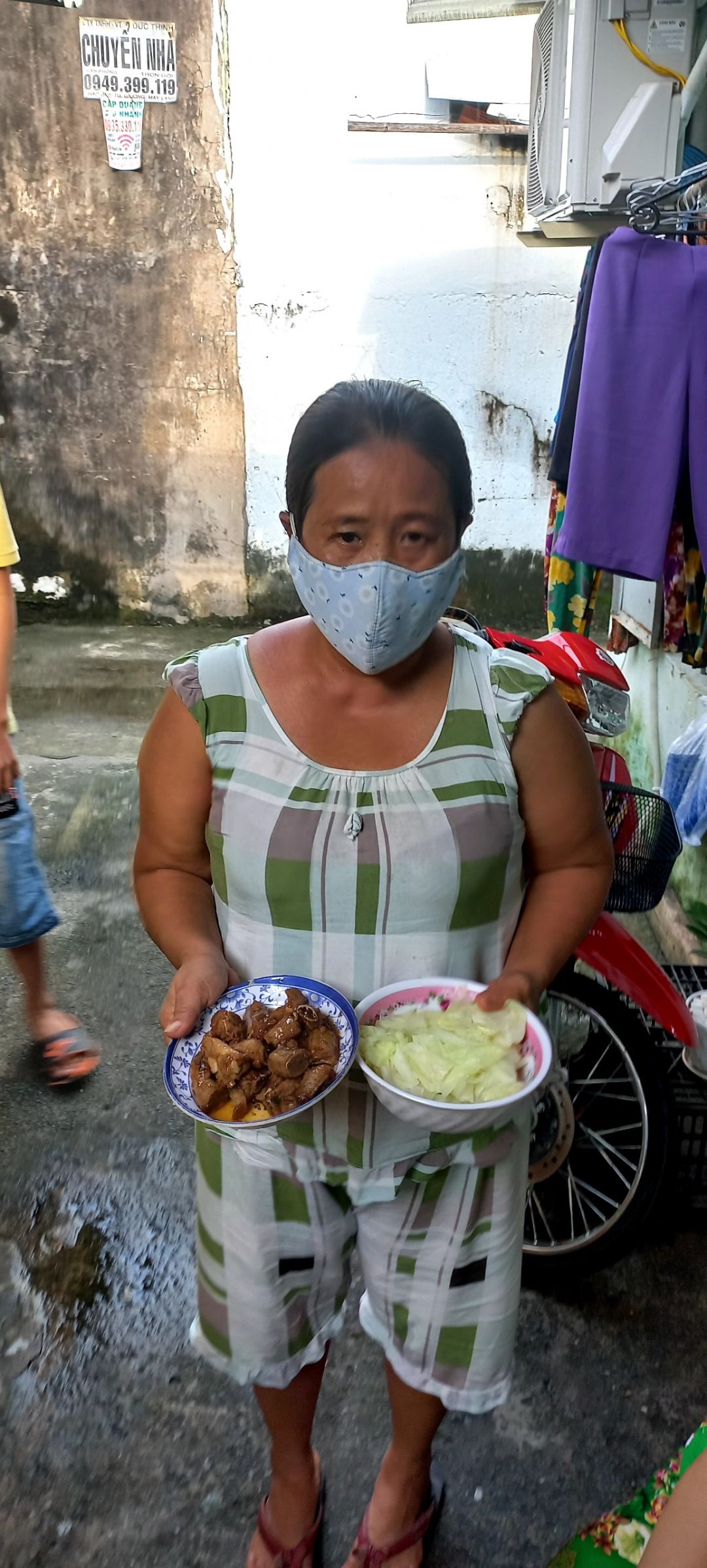 Bếp Thảo gửi đến Bệnh viện Dã chiến số 8 250 phần ăn với món chính là thịt kho củ cải và thịt gà xào dưa leo.