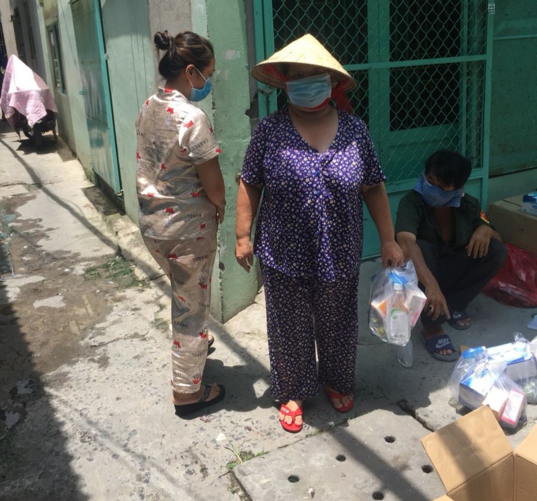 Dãy nhà trọ hiện đang bị phong tỏa do có 12/57 người bị nhiễm ( hiện tại những người còn lại 1 số đang có dấu hiệu ho sốt ạ ) . mọi người đang tự cách ly tại trọ do bên y tế bị quá tải nên không có người xuống test lại cho trọ cũng như đưa người bị đi cách ly ạ . Em xin được hỗ trợ thuốc và nước xịt khuẩn , khẩu trang và chanh cho 26 hộ ở đây ạ