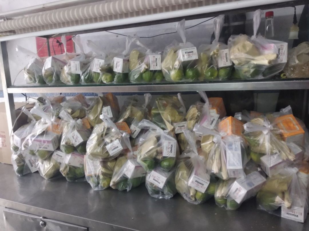 Do chỉ có một mình phân loại, chia phần và đóng gói nên chỉ kịp chuẩn bị được 100 phần quà, 100 phần còn lại gửi nhờ anh em phường 19 hỗ trợ đóng gói và gửi tới bà con.