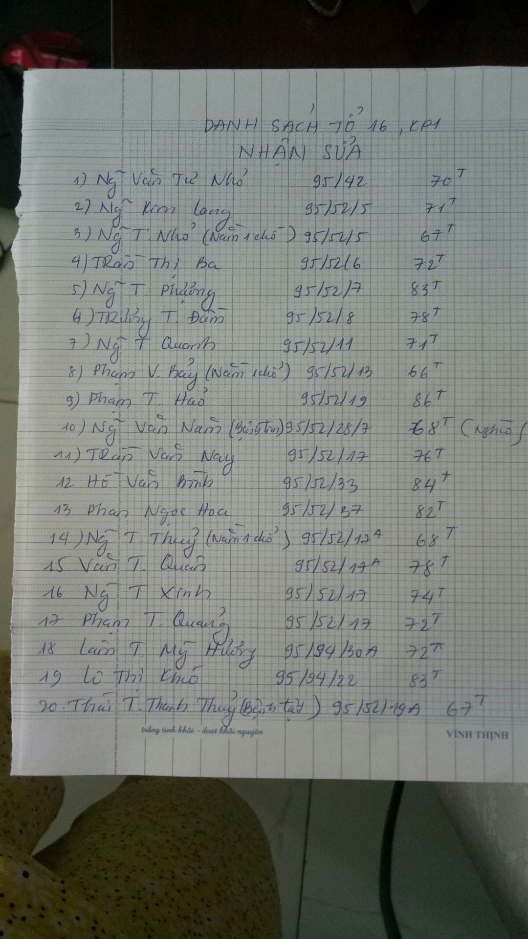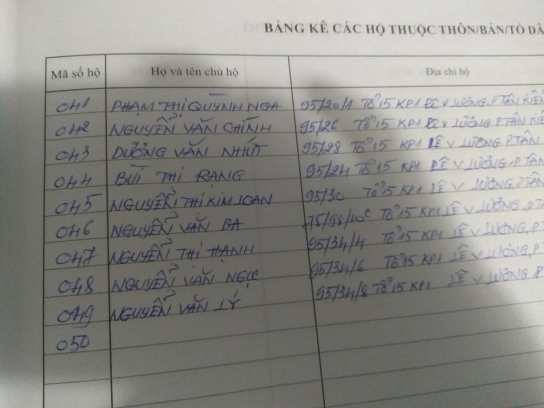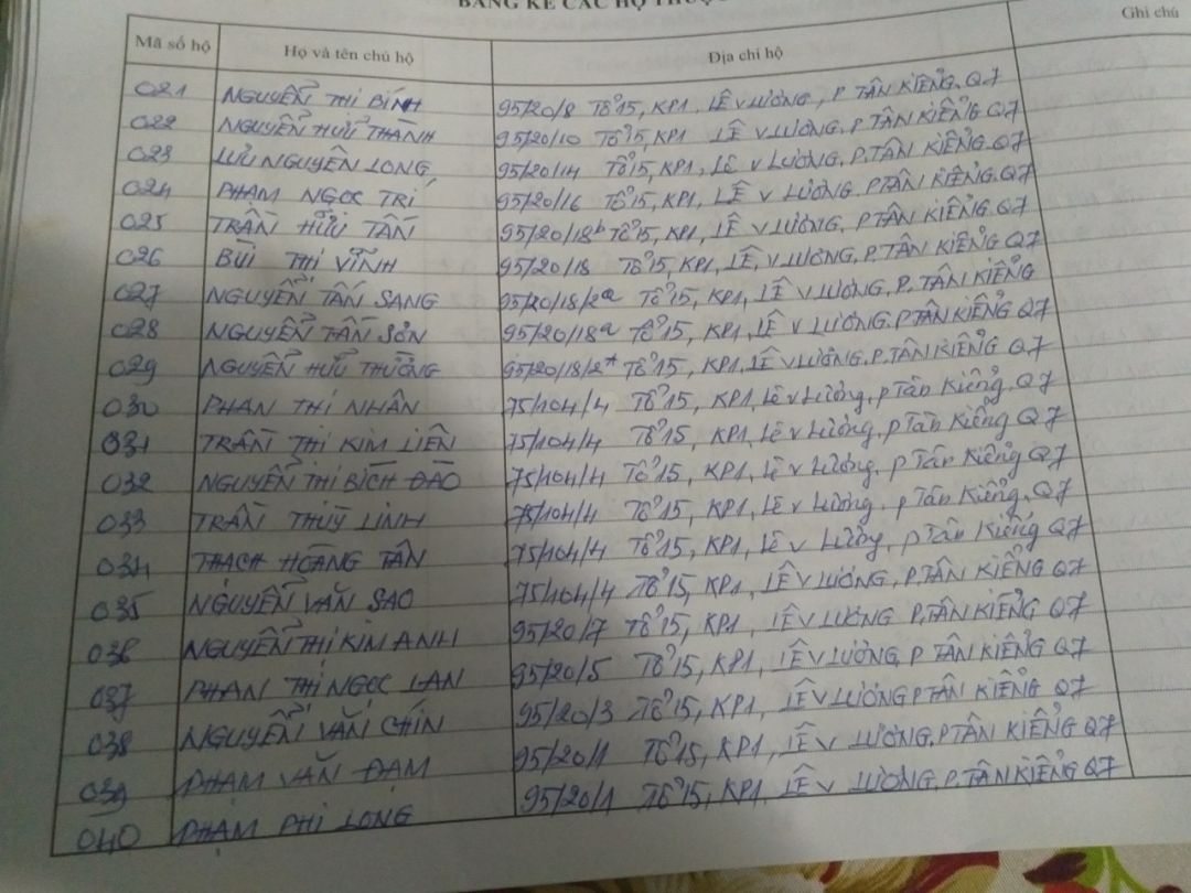 Cháu ghi rõ dùm địa bàn phát thuộc Tổ, Phường, Quận nào để mọi người tiện theo dõi vì nhìn theo hình chụp khá khó khăn.