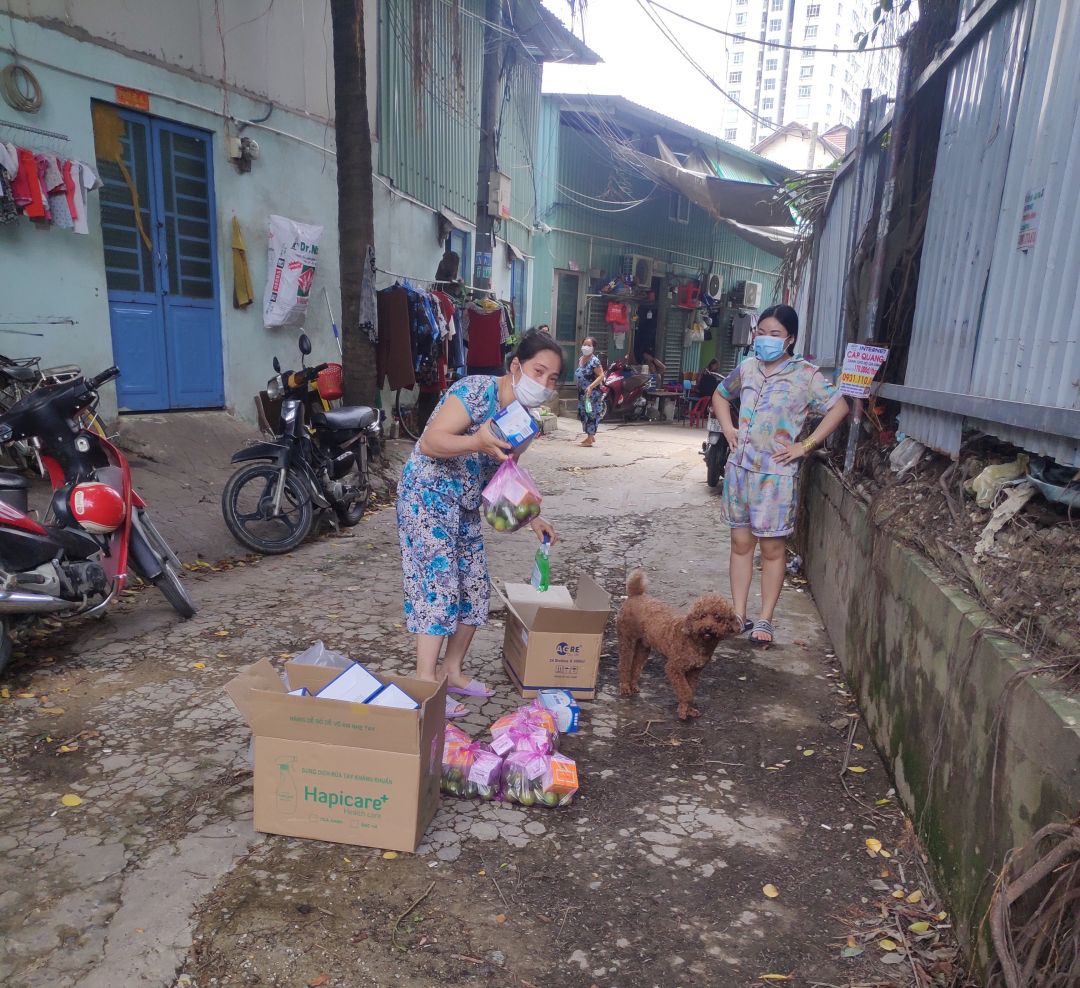 Hôm nay Anna Le đã nhận được hỗ trợ Vitamin C, Vitamin B, dung dịch sát khuẩn và khẩu trang cho 65 hộ khó khăn thuê trọ, các hộ đang bị cách ly tự điều trị tại nhà cũng như khu bếp. Các anh công an khu vực đã hỗ trợ Anna đi trao tận tay cho các hộ ấy. Người dân rất vui mừng và gửi lời cảm ơn chân thành đến các mạnh thường quân hỗ trợ.