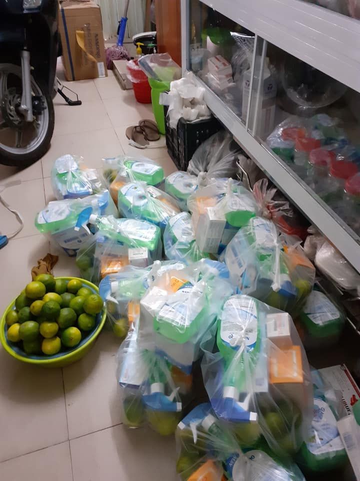 Mấy nay việc mua thuốc và các vật tư y tế như khẩu trang và dung dịch sát khuẩn khá khó khăn, rất may chương trình được sự hỗ trợ của cô Phúc (gia đình bác PQuyen) đã liên hệ trực tiếp nguồn cung tại nhà máy nên mua được đủ số lượng và giá rẻ hơn nhiều so với thị trường.
