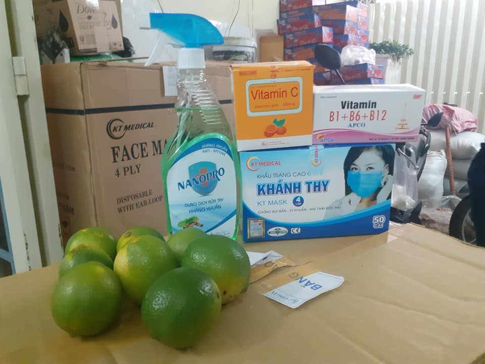 Mấy nay việc mua thuốc và các vật tư y tế như khẩu trang và dung dịch sát khuẩn khá khó khăn, rất may chương trình được sự hỗ trợ của cô Phúc (gia đình bác PQuyen) đã liên hệ trực tiếp nguồn cung tại nhà máy nên mua được đủ số lượng và giá rẻ hơn nhiều so với thị trường.