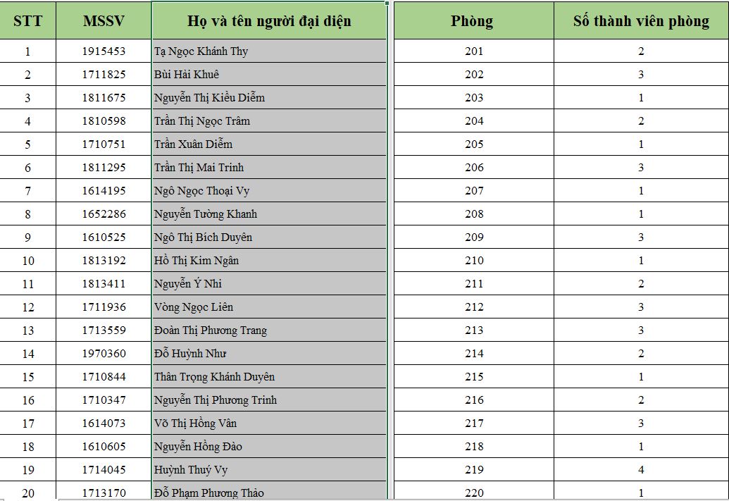 Em xin được cập nhật danh sách những sinh viên đại diện phòng sẽ được nhận hỗ trợ ạ!