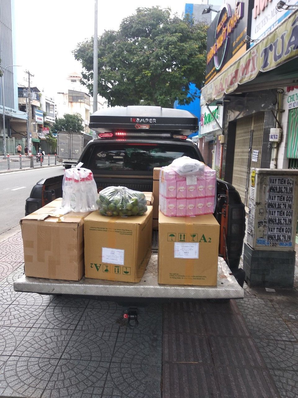 Sáng nay với sự giúp đỡ của bạn Nhật Anh nhóm PNF SG chúng ta đã gửi hàng hóa tới 2 địa điểm trên, ngoài thuốc bổ, khẩu trang y tế, dung dịch sát khuẩn còn có thêm chanh và nhiều loại rau củ khác cụ thể như sau :