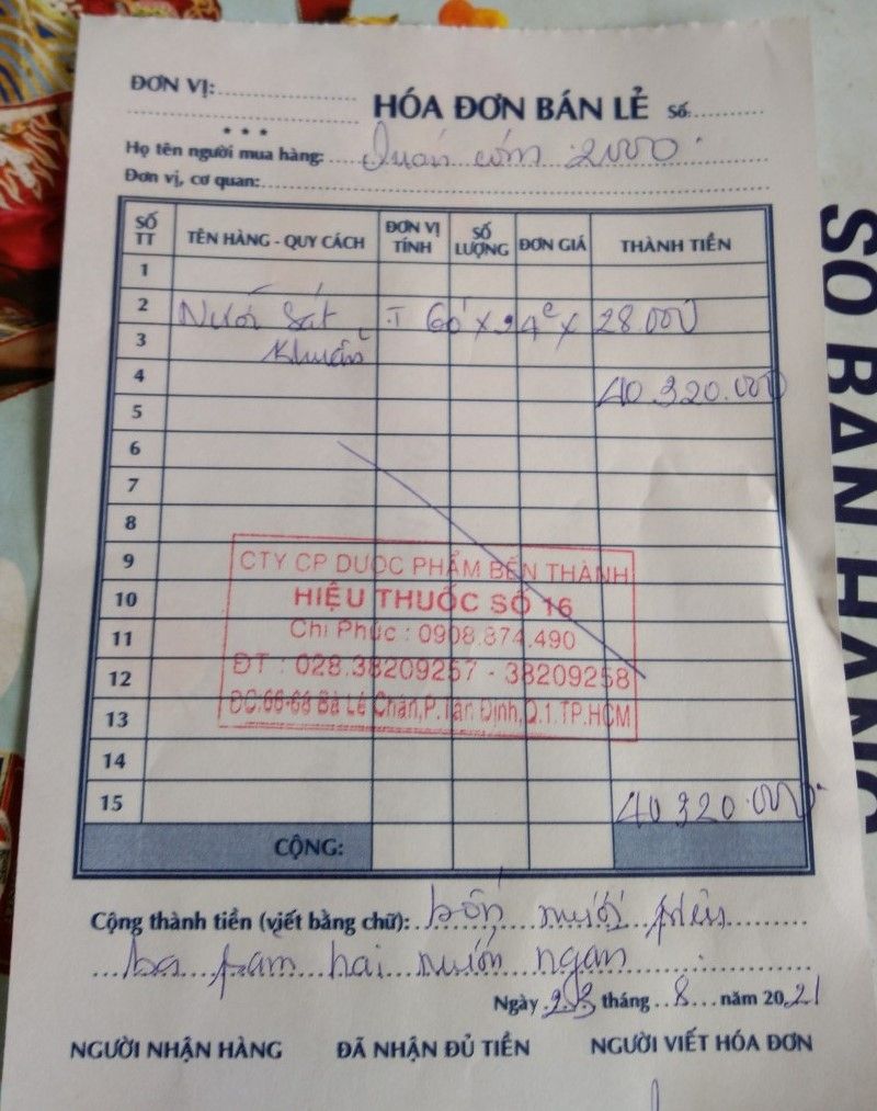 Tiger gửi số lượng và hóa đơn mua thuốc đợt 7.