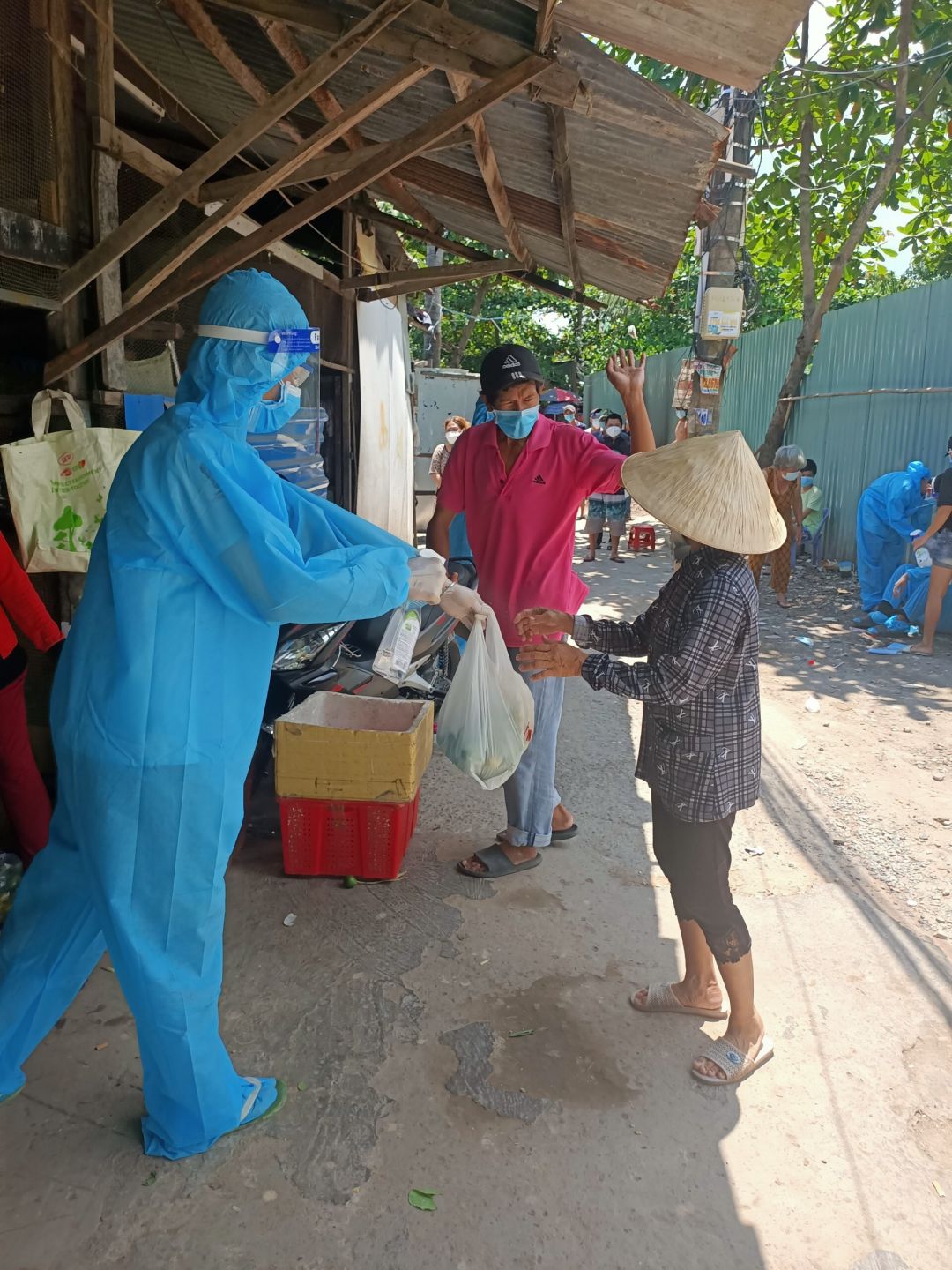Thân gởi cả nhà hình ảnh nhận quà của 43 hộ hẻm 27 Điện Biên Phủ, phường 15, quận Bình Thạnh.