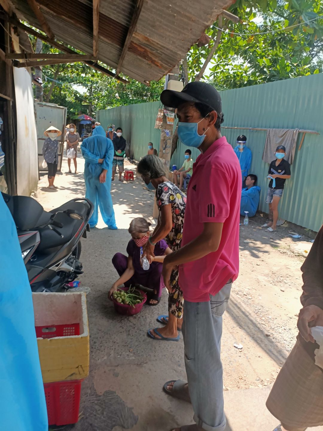 Tieuhuongduong gởi cả nhà danh sách 43 hộ khó khăn trong hẻm phong tỏa 27 Điện Biên Phủ, phường 15, quận Bình Thạnh xin hỗ trợ rau củ, khẩu trang, dung dịch sát khuẩn, thuốc bổ.