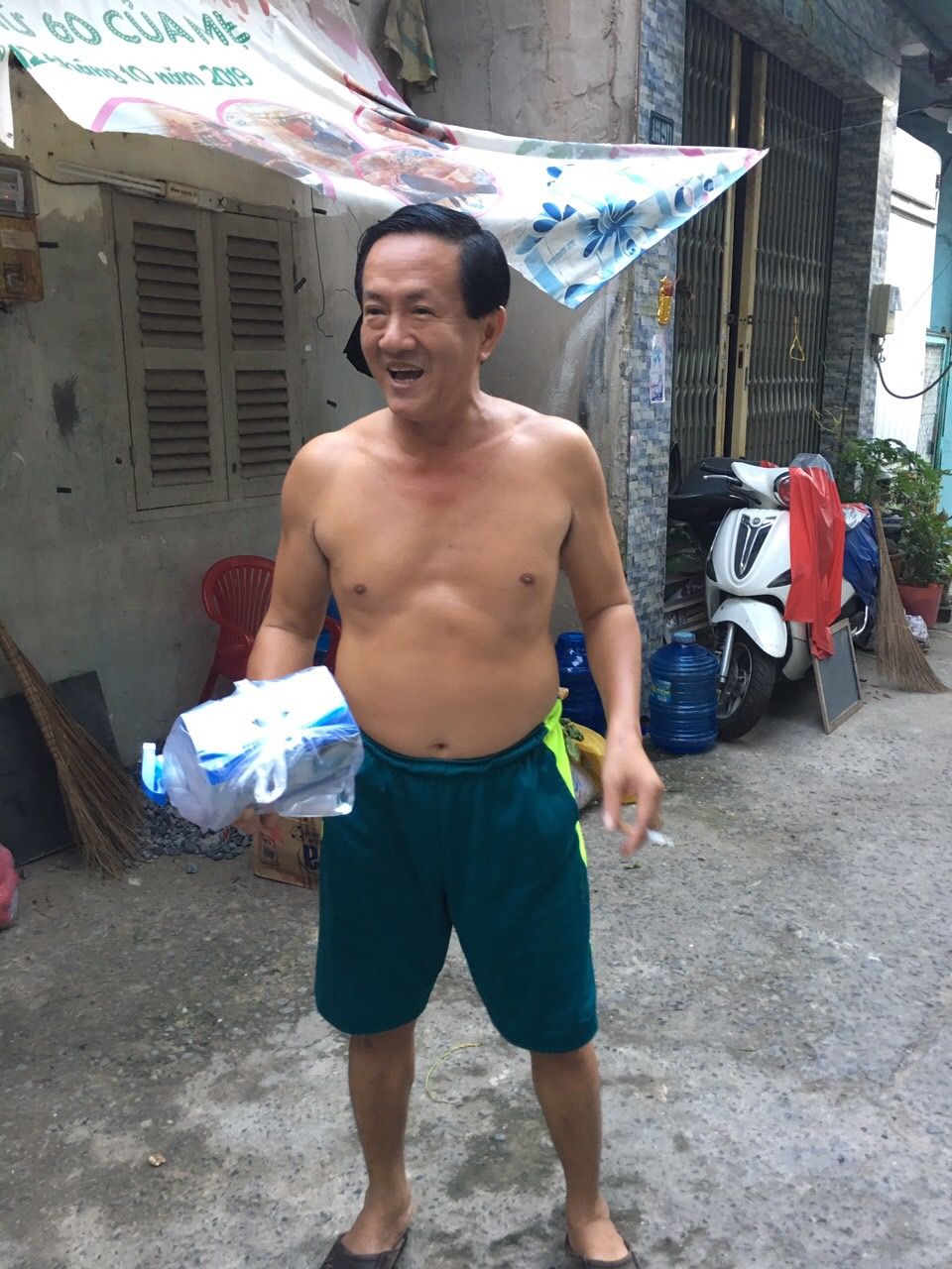 Thân gởi cả nhà hình ảnh nhận quà của chương trình gởi tặng khu nhà trọ 86/36 Phạm Văn Bạch, phường 15, quận Tân Bình.