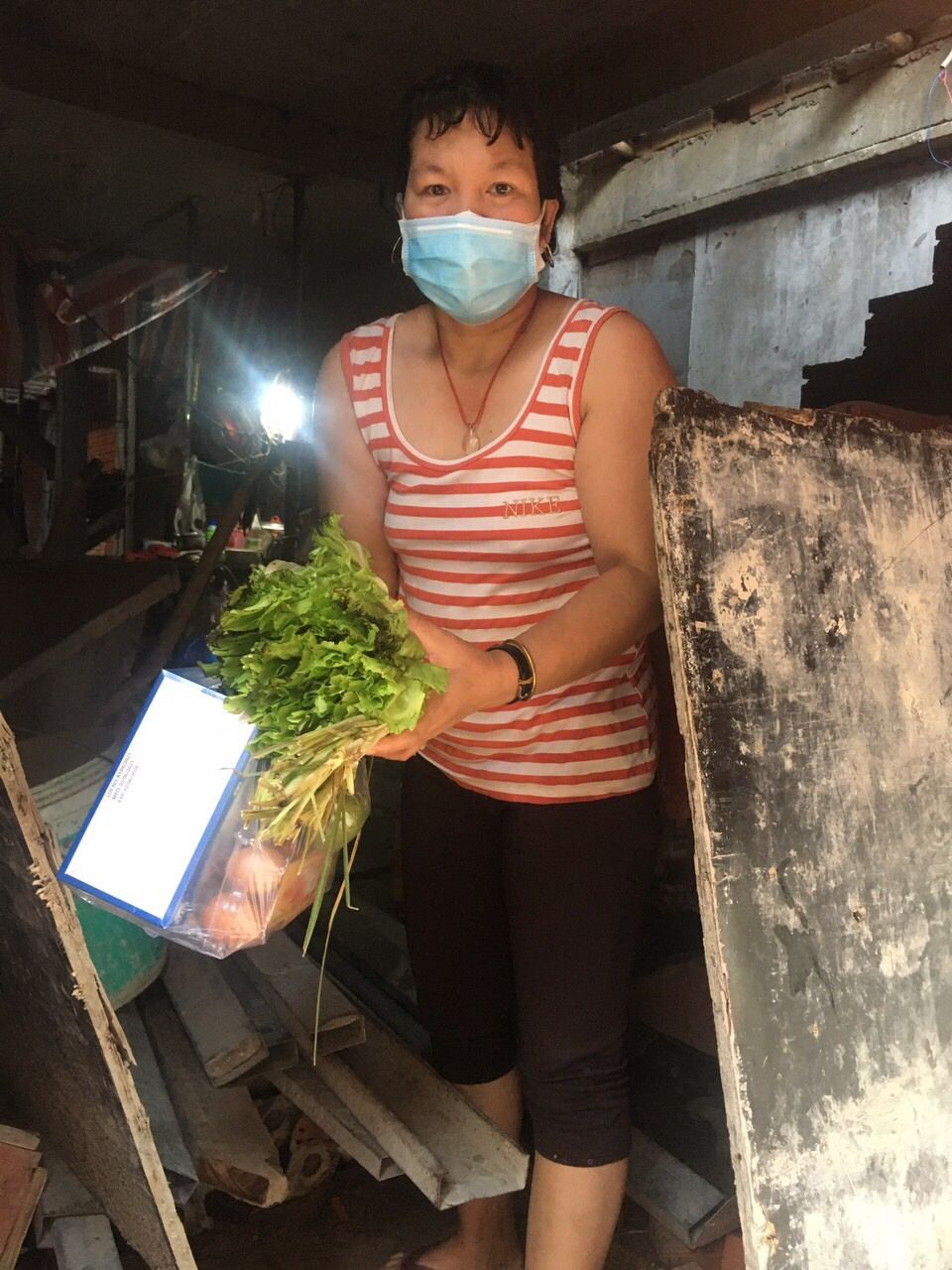 Chị Huỳnh Thị Kim Mai, chi hội trưởng phụ nữ khu phố 4 gởi danh sách 100 hộ khó khăn khu phố 4, phường Tân Phú, quận 7 xin hỗ trợ rau củ, khẩu trang, dung dịch sát khuẩn, thuốc bổ.
