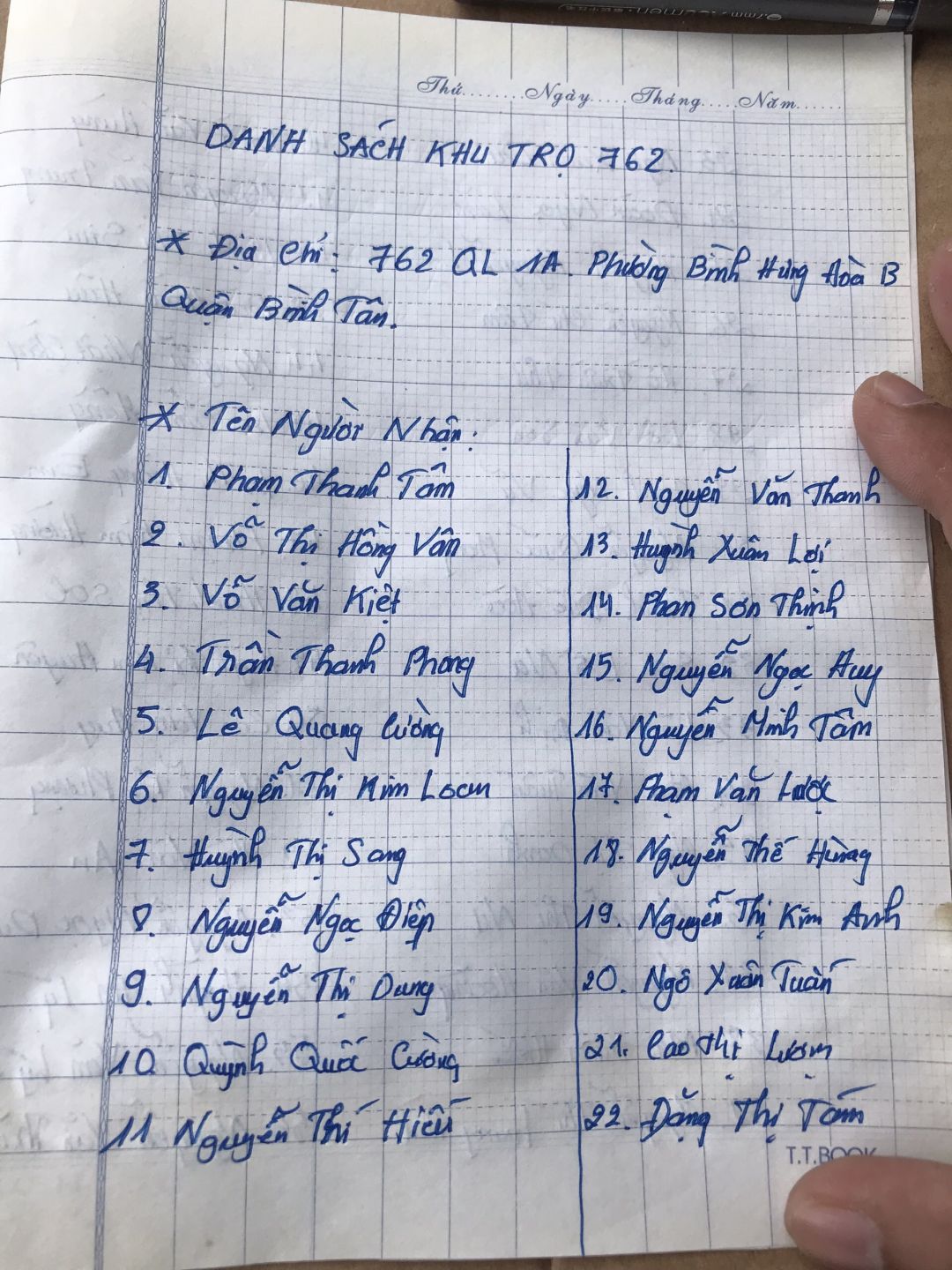 Bạn Nga, một công nhân trong nhà trọ 83/66 Phạm Văn Bạch, phường 15, quận Tân Bình gởi danh sách 30 người (27 người thuê trọ và 3 người lớn tuổi khó khăn gần nhà) xin hỗ trợ thực phẩm, khẩu trang, dung dịch sát khuẩn, thuốc bổ