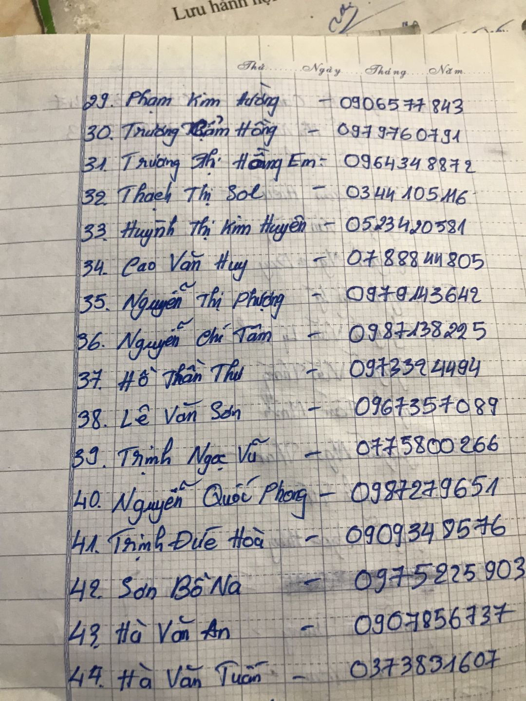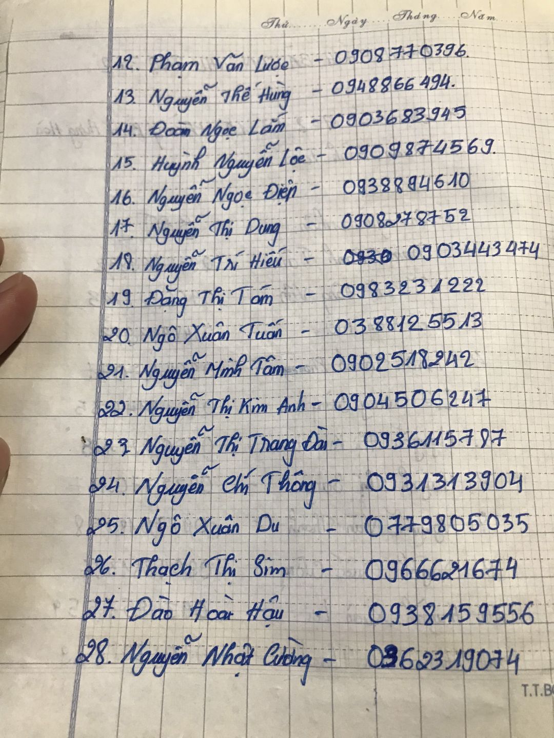 - Người gởi danh sách: Nguyễn Hoàng Tú, điện thoại: 0763347059