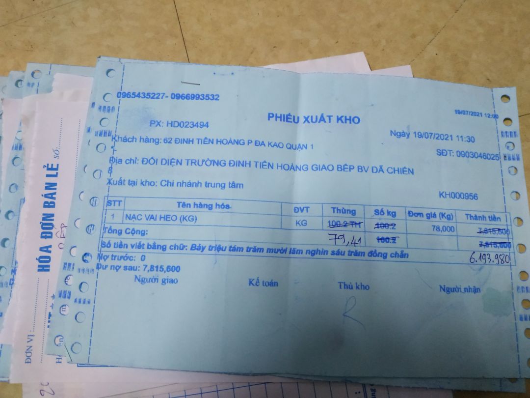 - Mua 158.91kg nạc vai heo: 78,000đ/kg x 158.91kg = 12,394,980đ