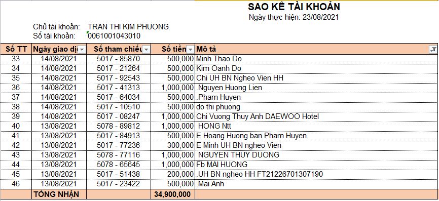 NHờ Thỏ cập nhập cho chị sao kê NH tính đến hôm nay với để chị còn update, tks,,,
